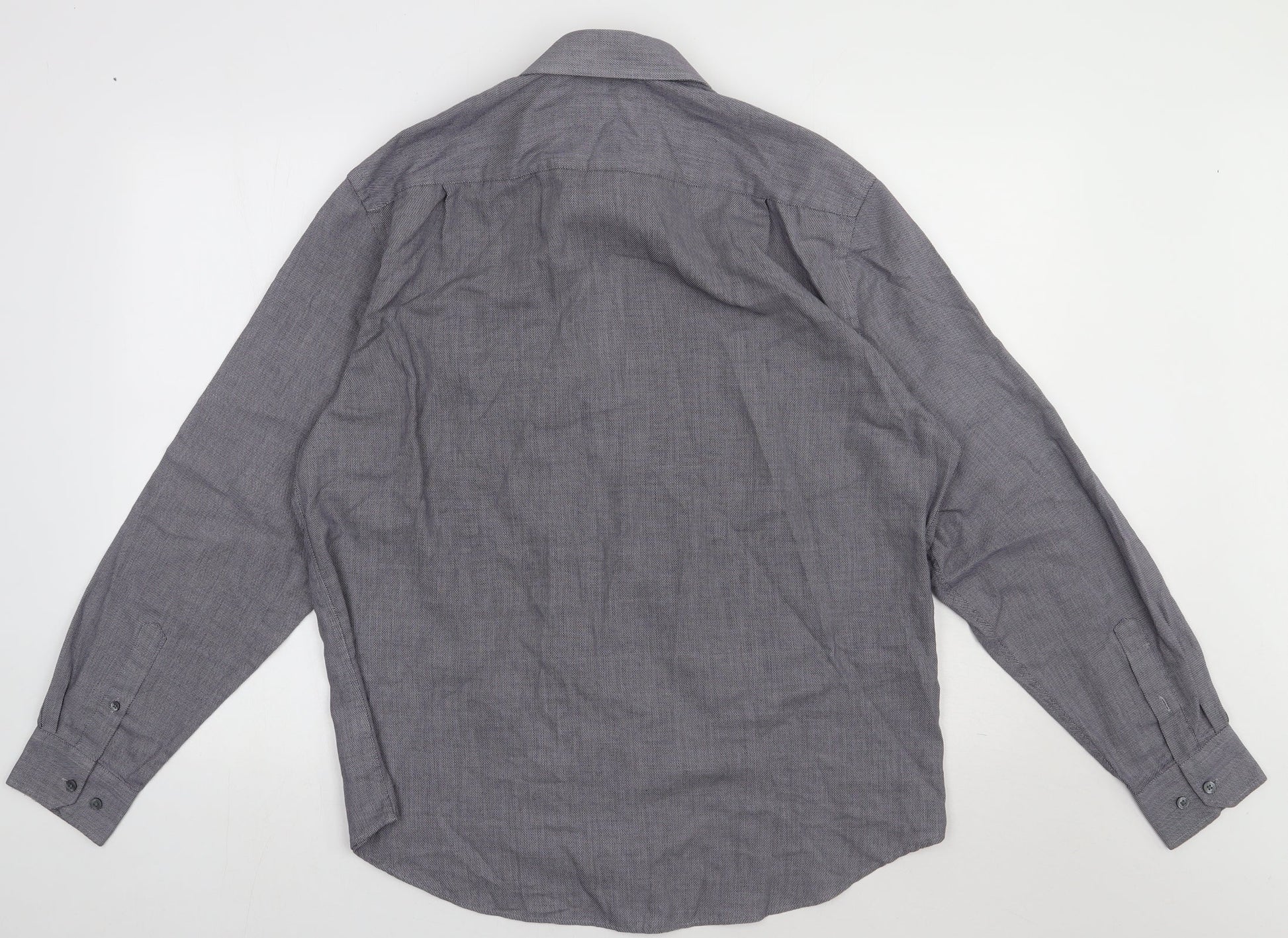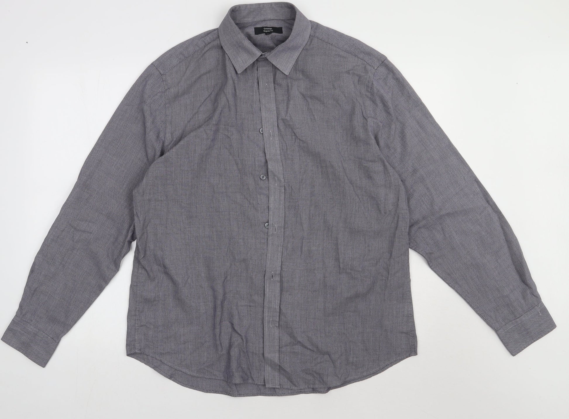 George Mens Grey Polyester Button-Up Size 16.5 Collared Button
