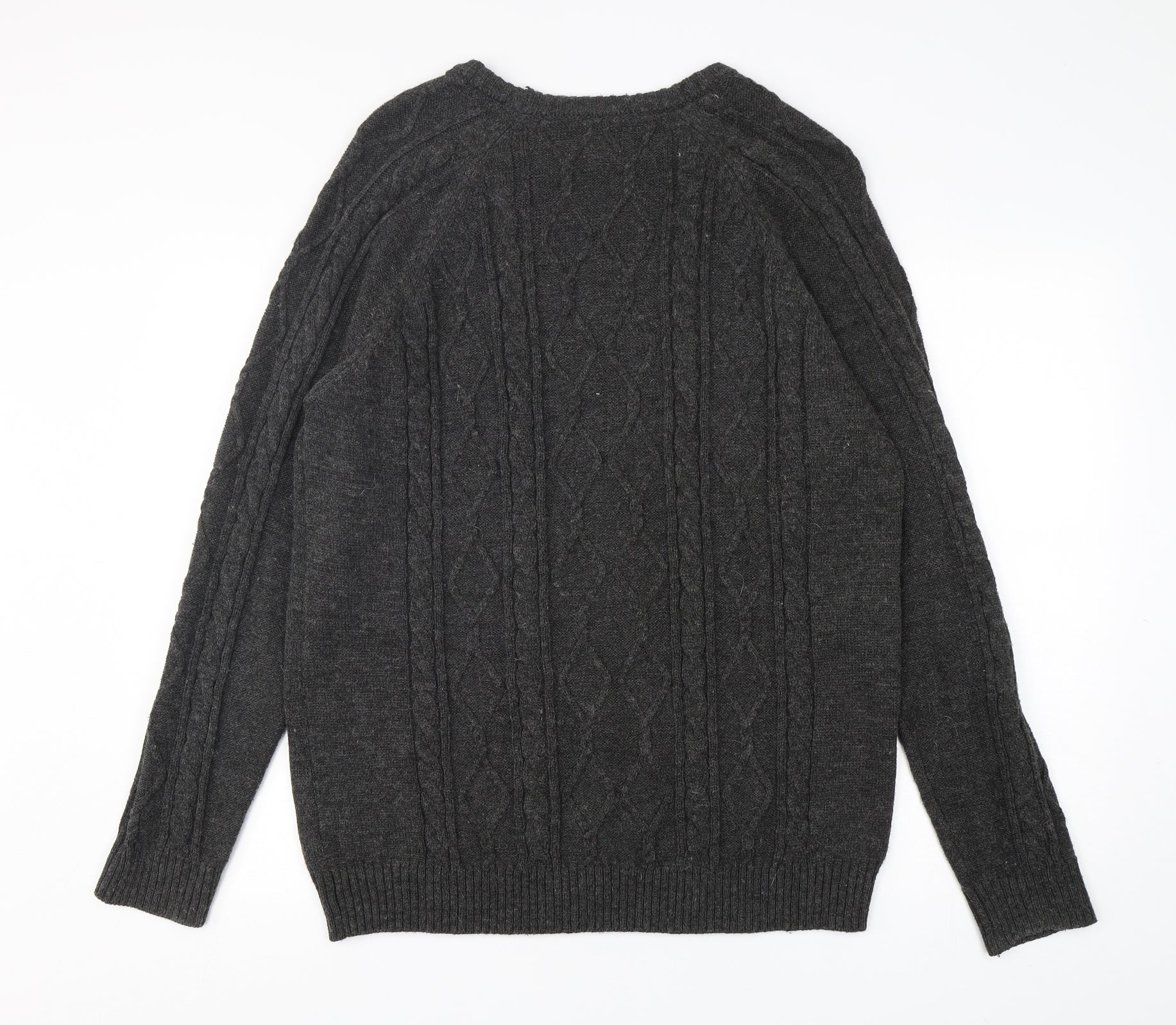 George Mens Grey Round Neck Acrylic Pullover Jumper Size M