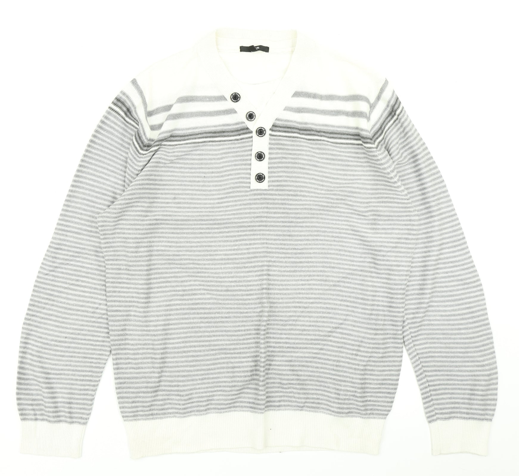 George Mens Grey Striped Knit Pullover Jumper Size L