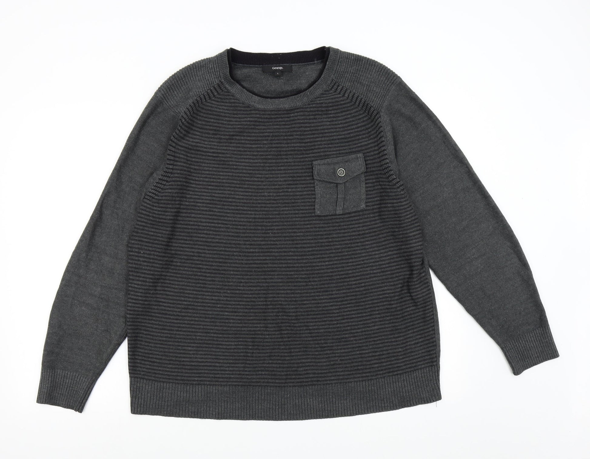 George Mens Grey Striped Knit Pullover Jumper Size L