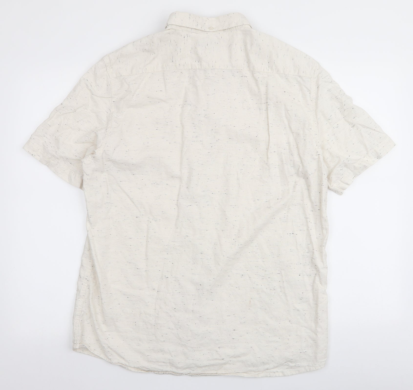 George Mens Ivory Cotton Button-Up Size L Collared Button