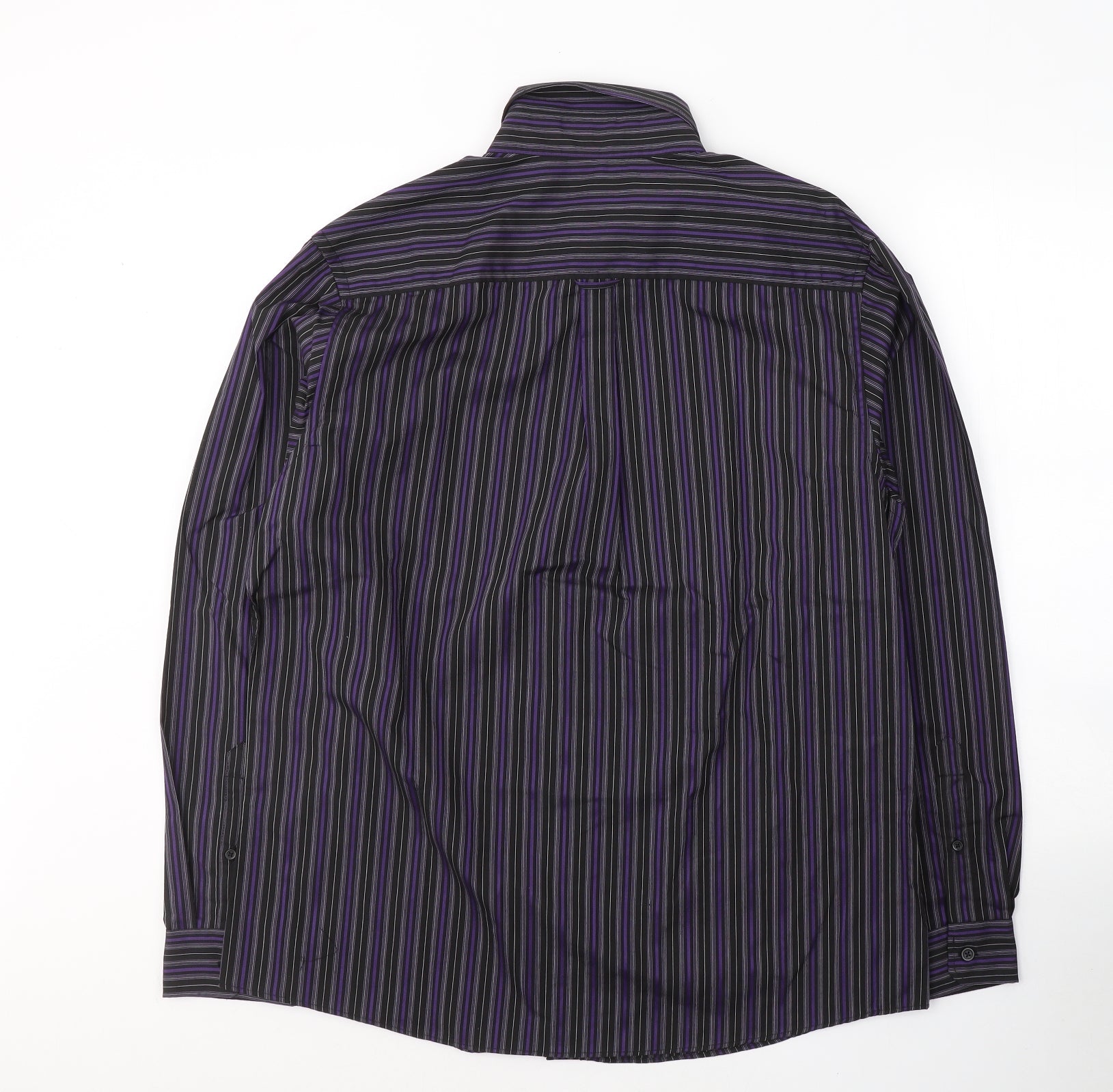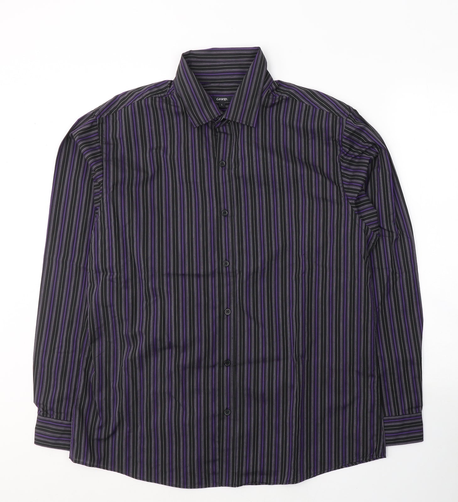 George Mens Purple Striped Polyester Button-Up Size L Collared Button