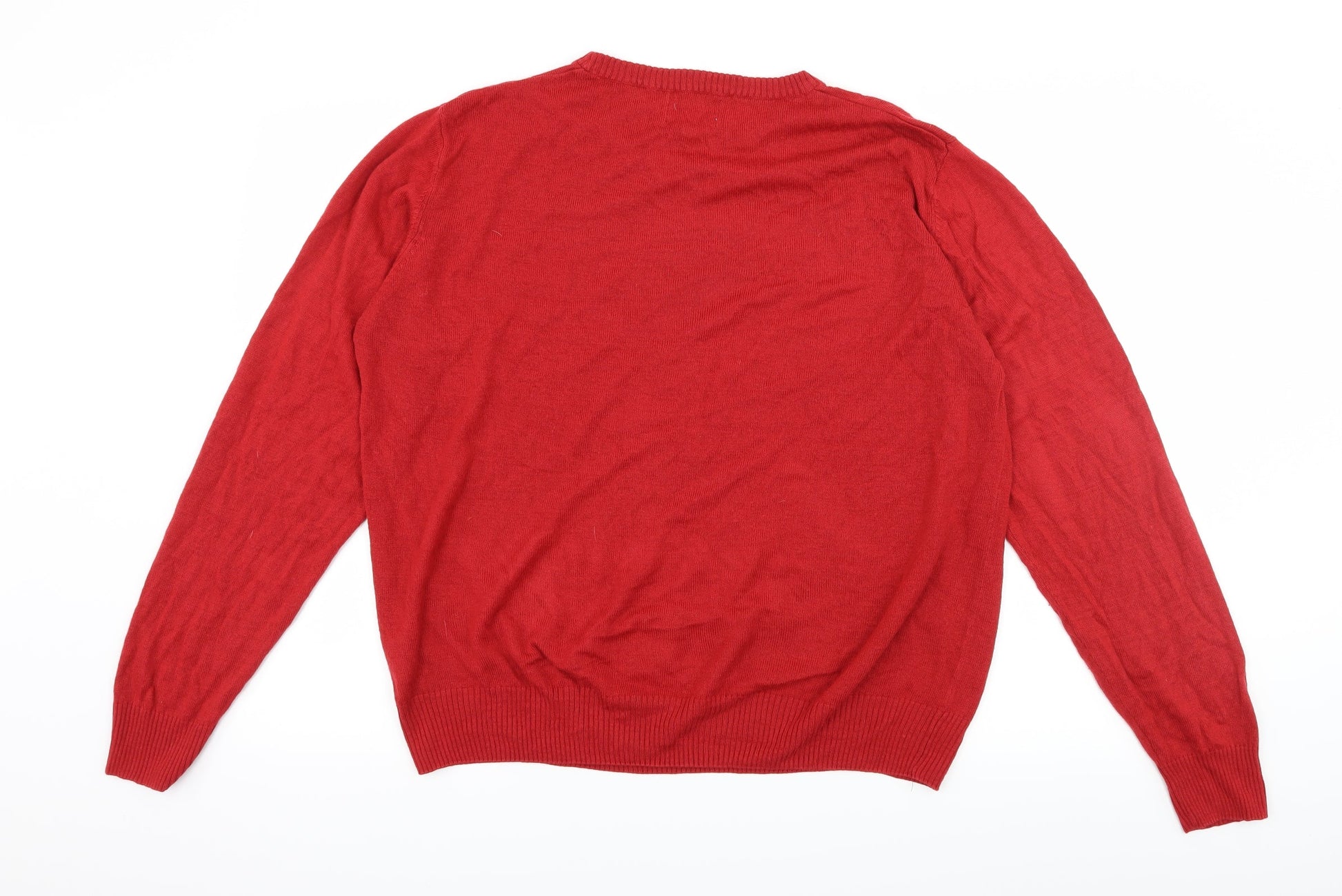 George Mens Red Knit Pullover Jumper Size L - Santa Ho Ho Ho