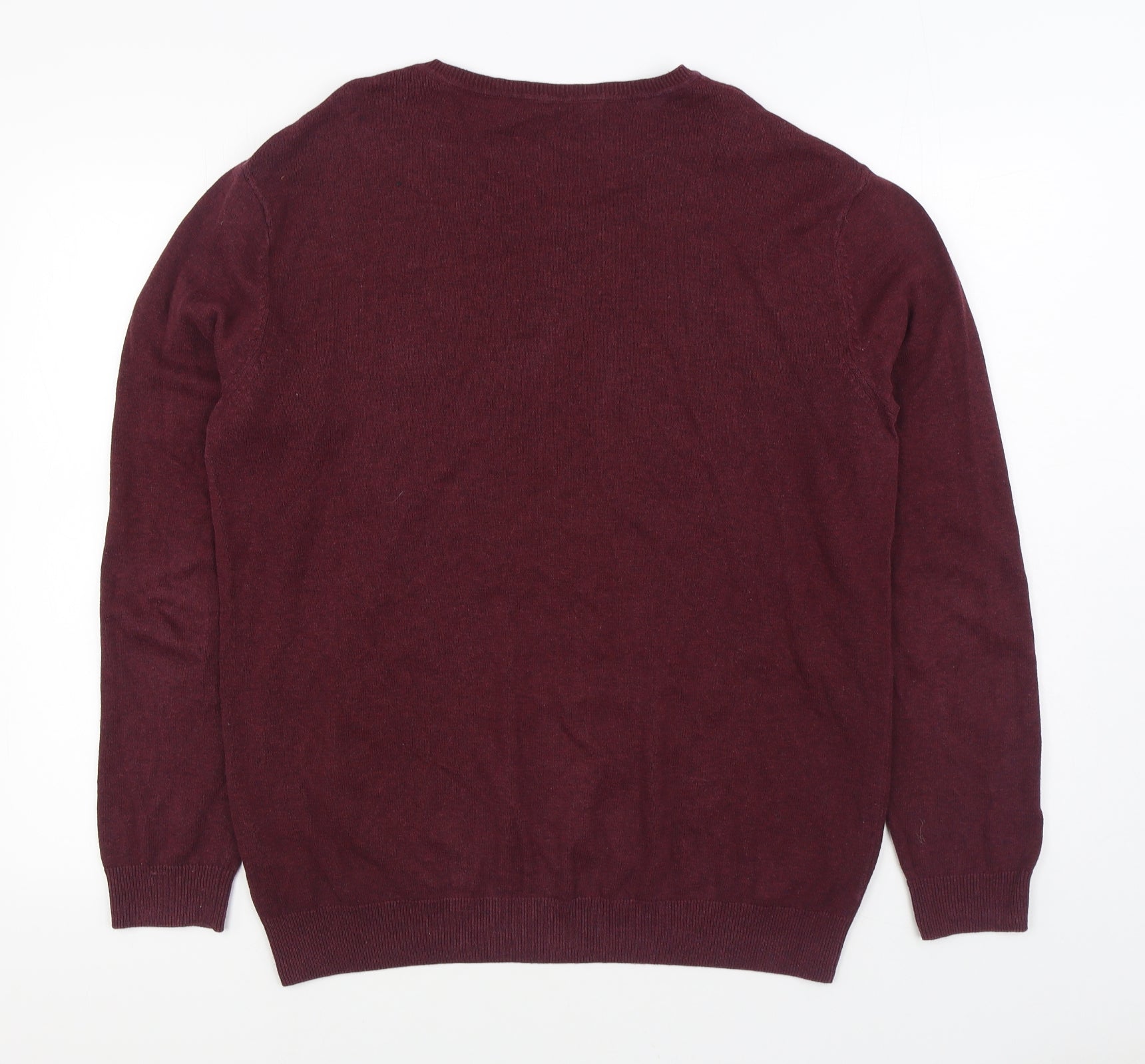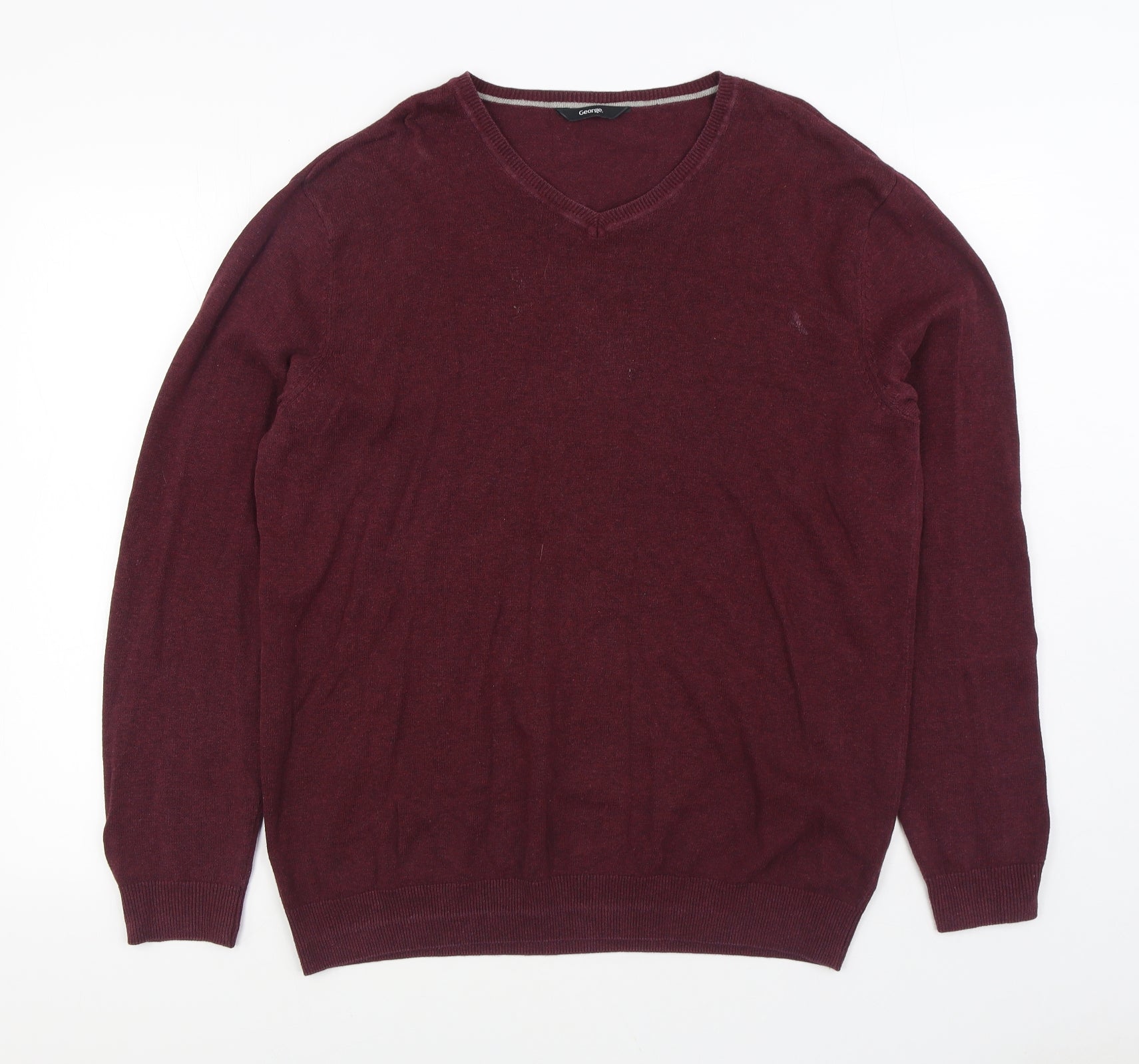 George Mens Red V-Neck Cotton Pullover Jumper Size M