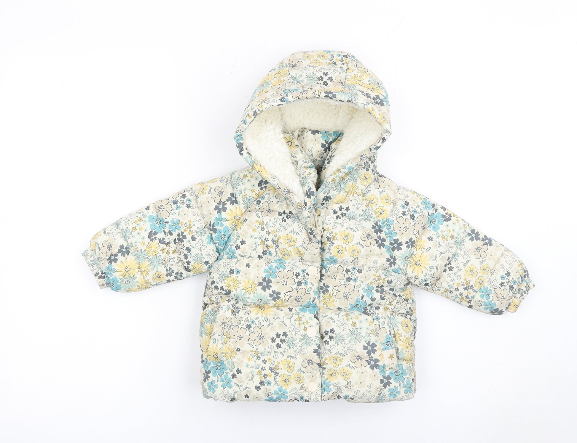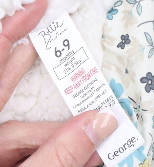 George Unisex Baby Multicoloured Floral Puffer Coat 6-9 Months Hooded Winter