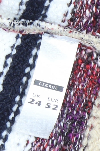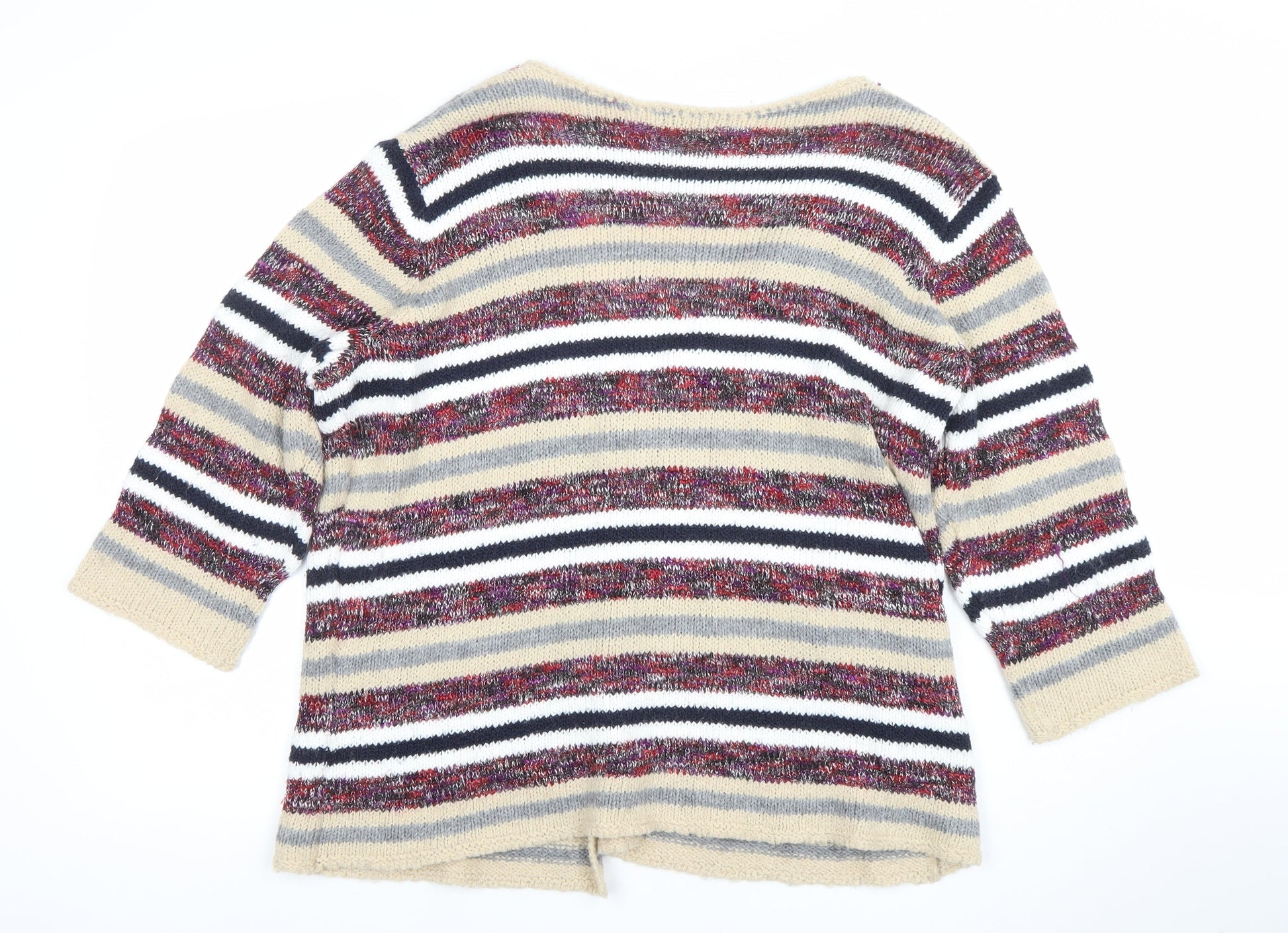 George Women Beige Multicoloured Size 24 Striped Open Knit Cardigan