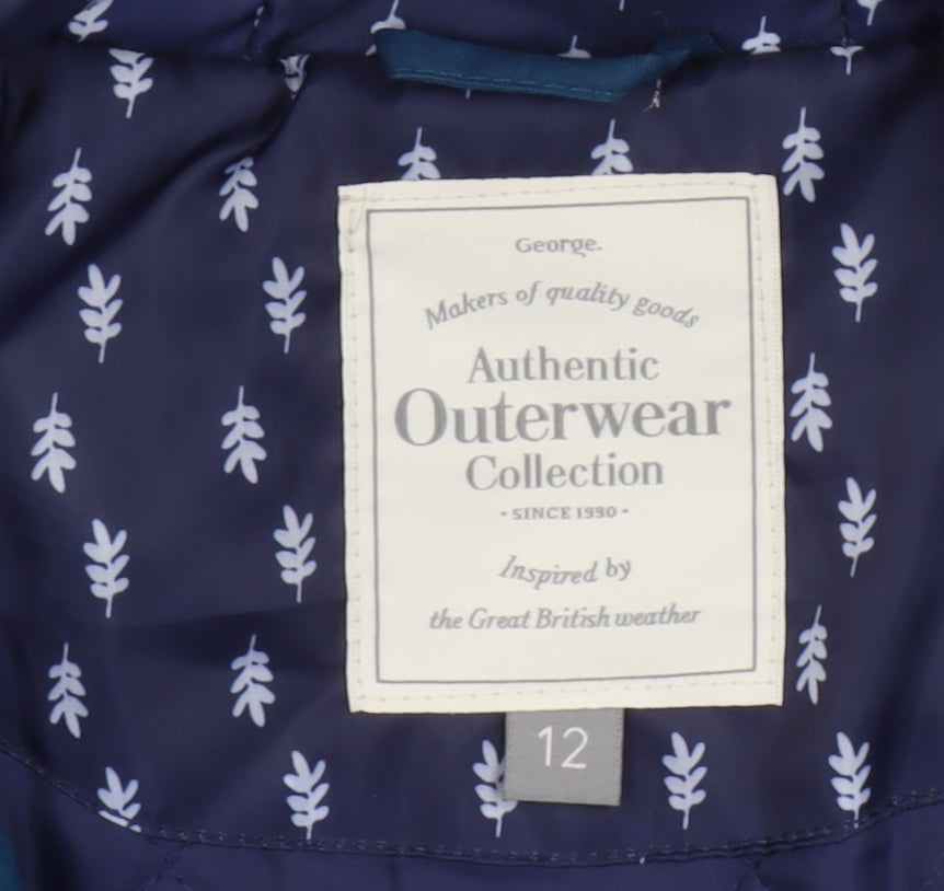George Women Blue Parka Jacket Size 12 Hooded Mid-Length Cotton Blend