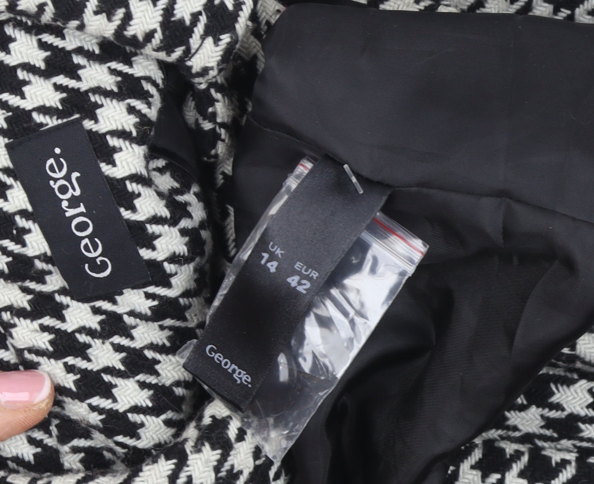 George Women’s Black Houndstooth Mid-Length Overcoat Size 14