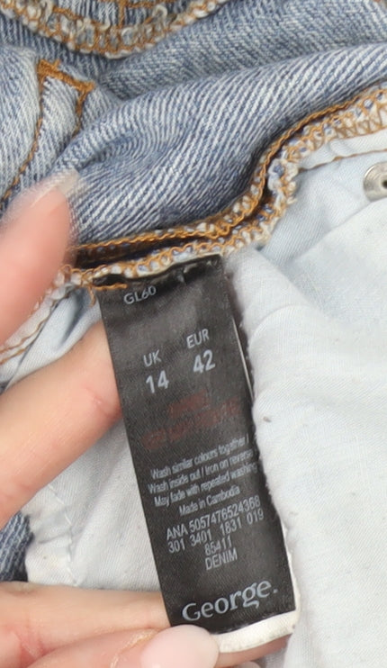 George Women’s Blue Denim Boyfriend Shorts UK 14 Casual Distressed