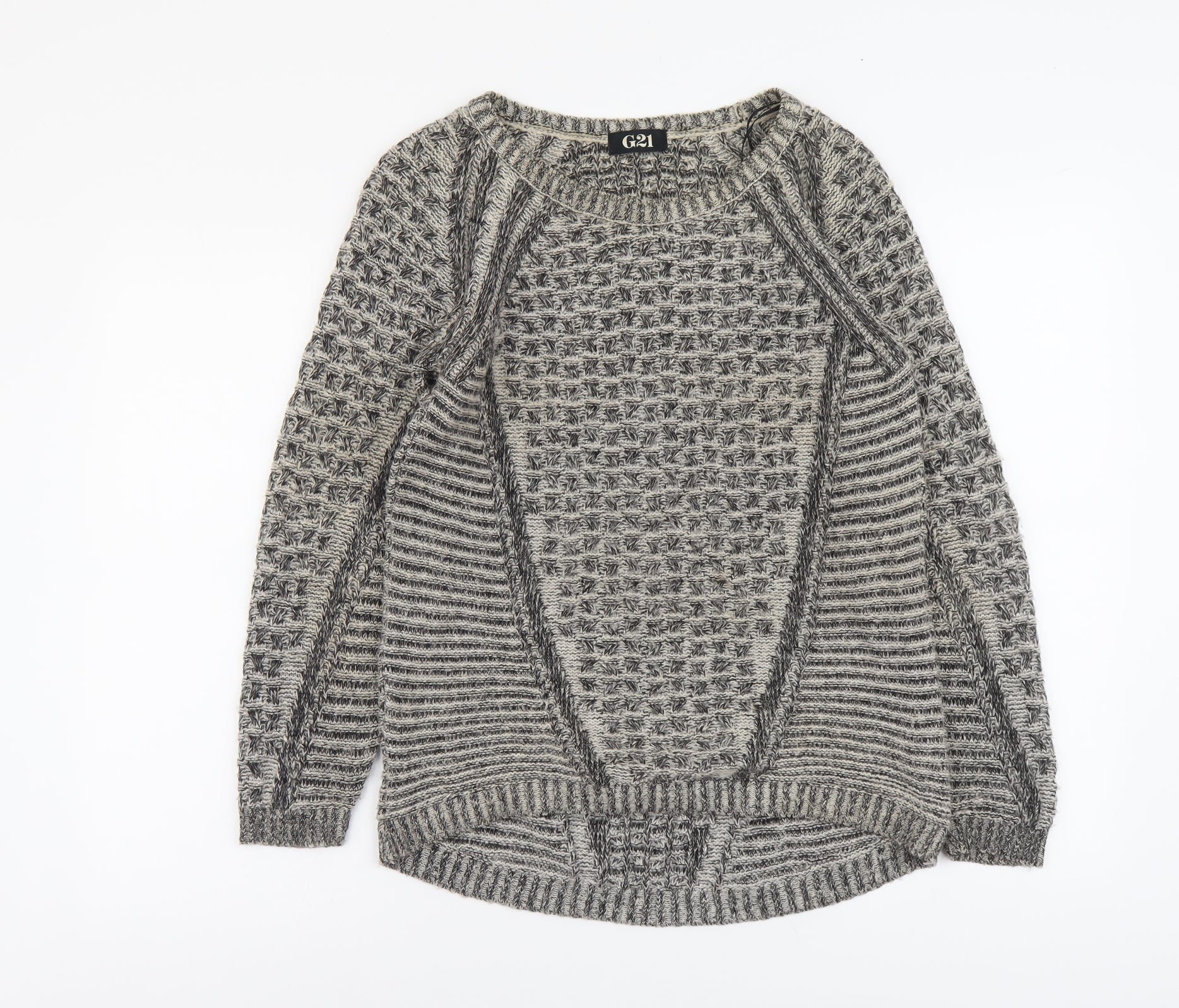George Womens Beige Boat Neck Geometric Acrylic Pullover Jumper Size 8