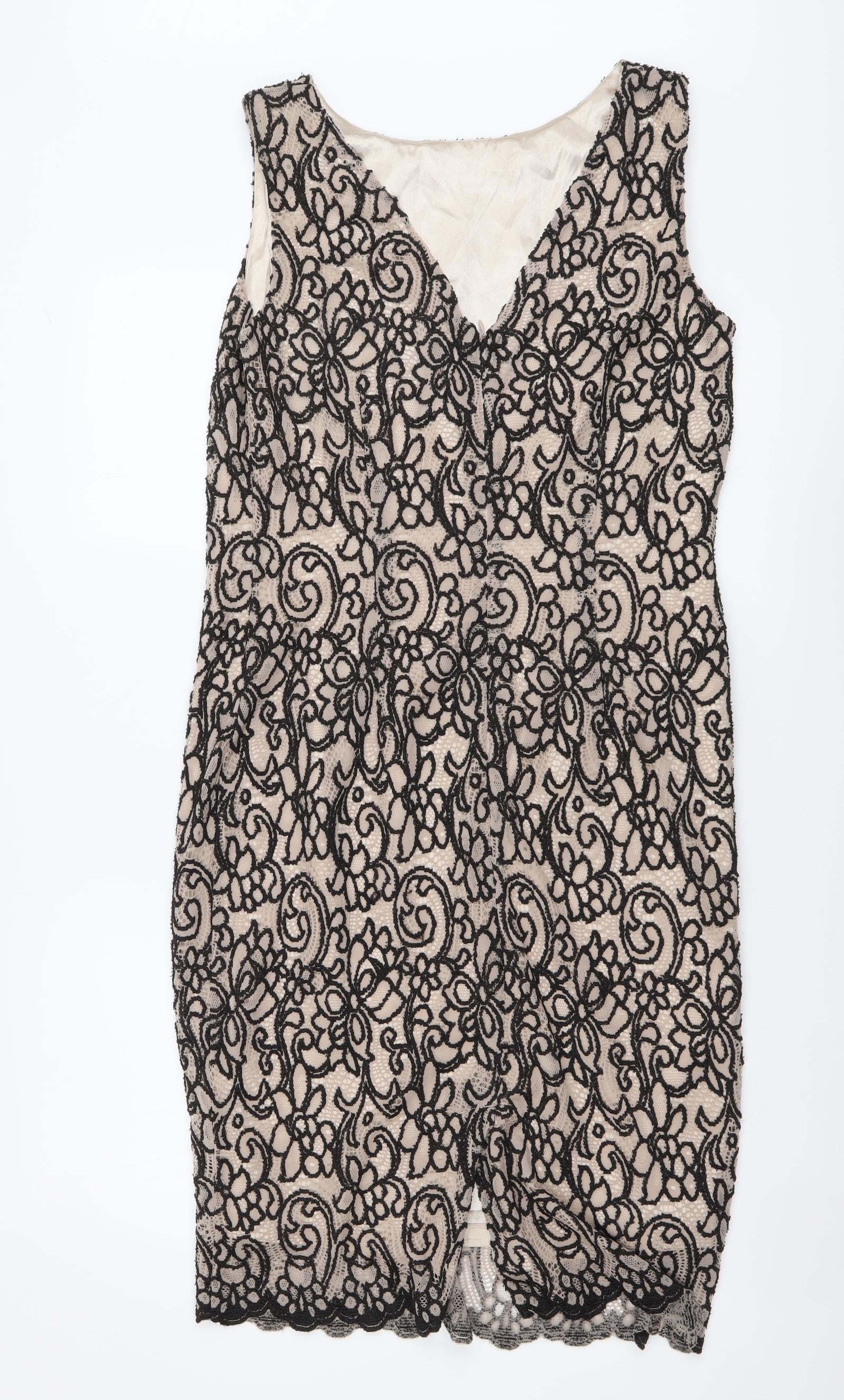 George Womens Beige Geometric Polyester A-Line Size 12 Boat Neck Zip