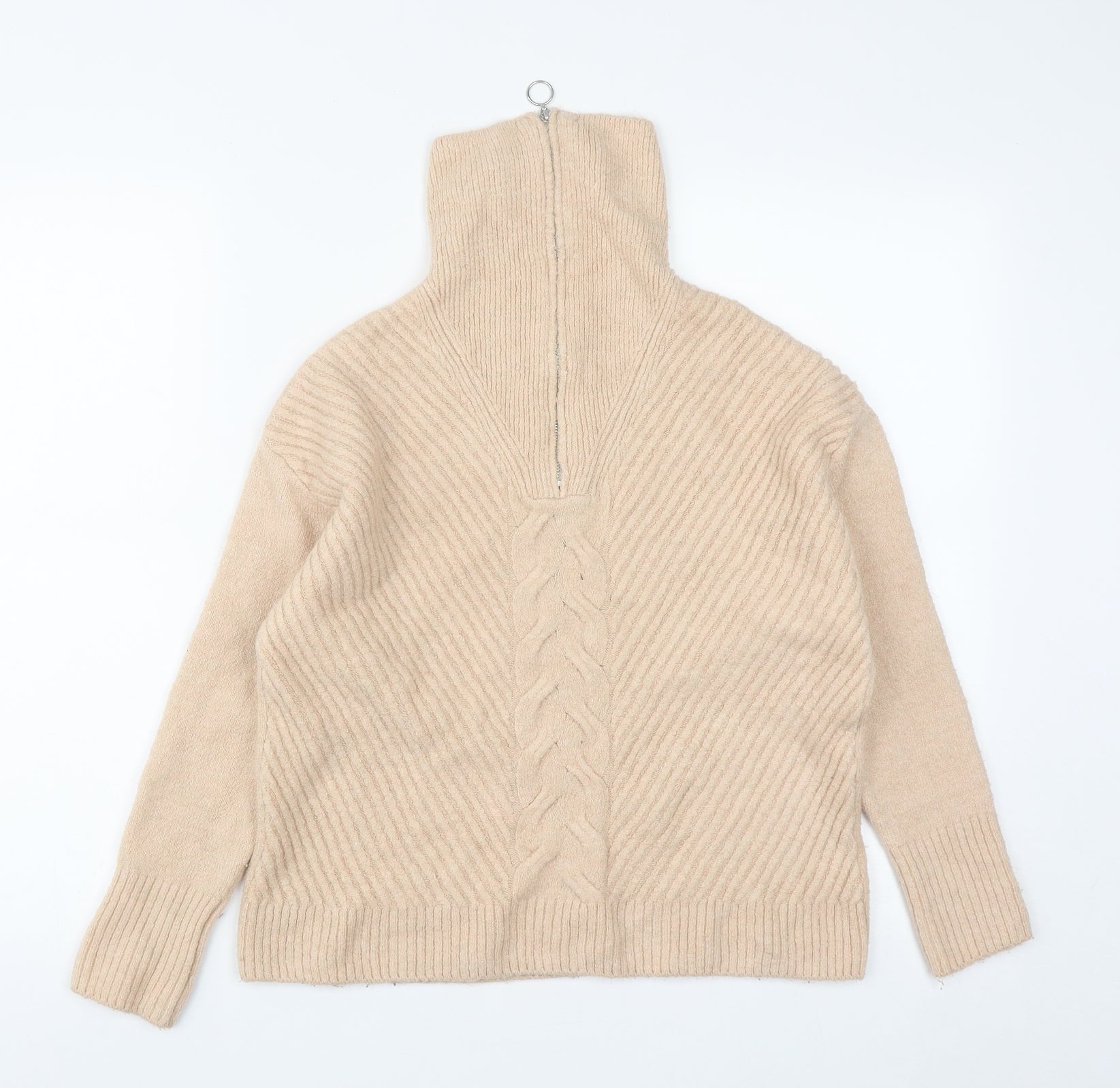 George Womens Beige High Neck Acrylic Pullover Jumper Size S