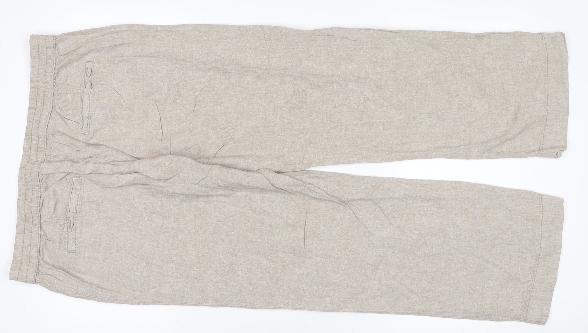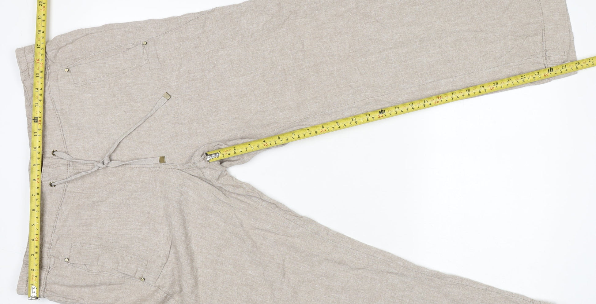 George Women's Beige Linen Blend Wide Leg Drawstring Trousers Size 14