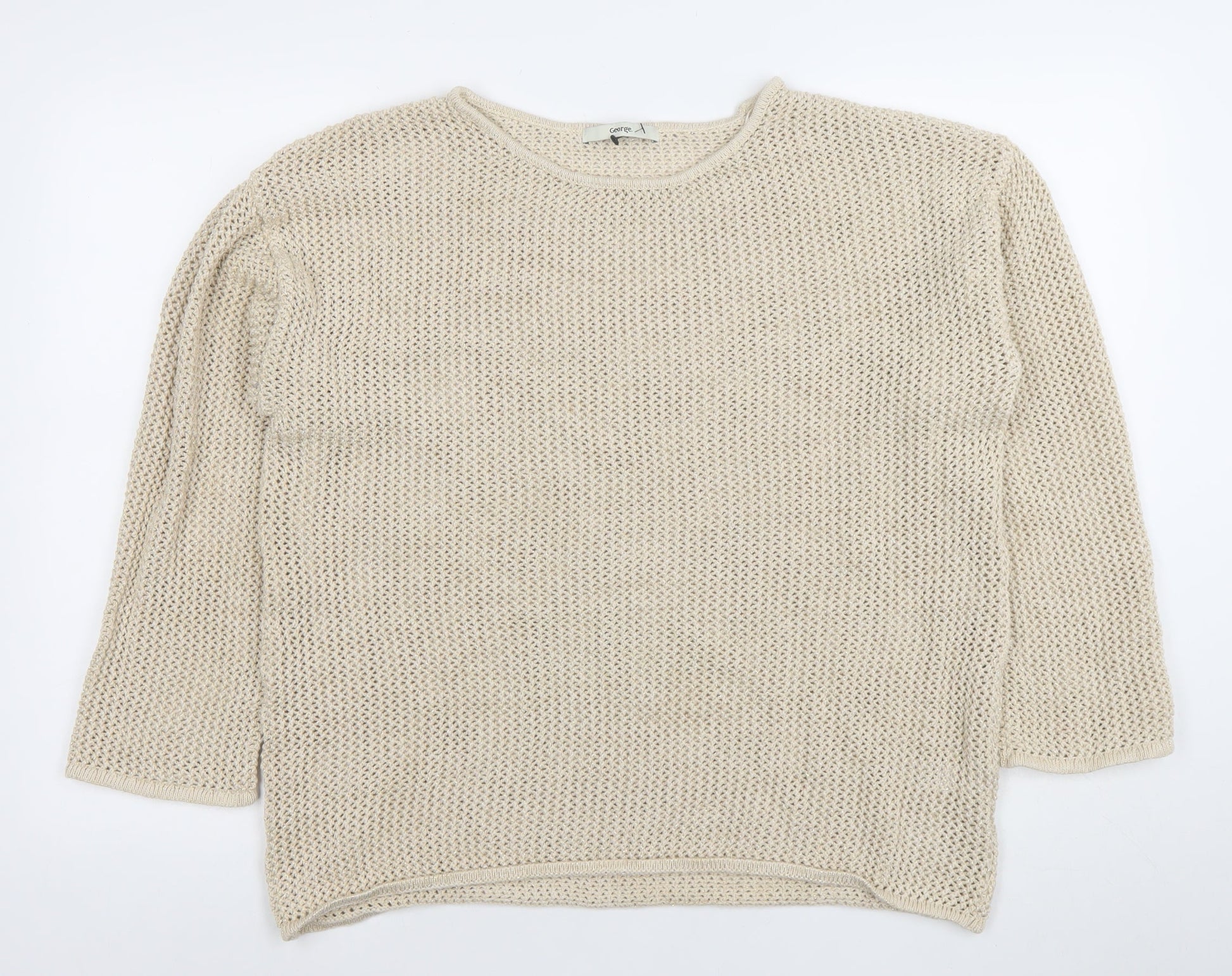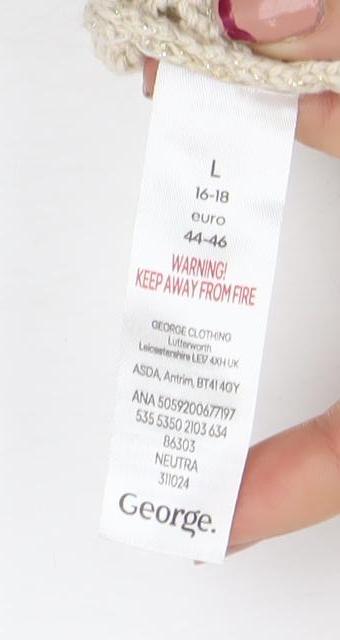 George Women's Beige Metallic Open-Knit Pullover Jumper L