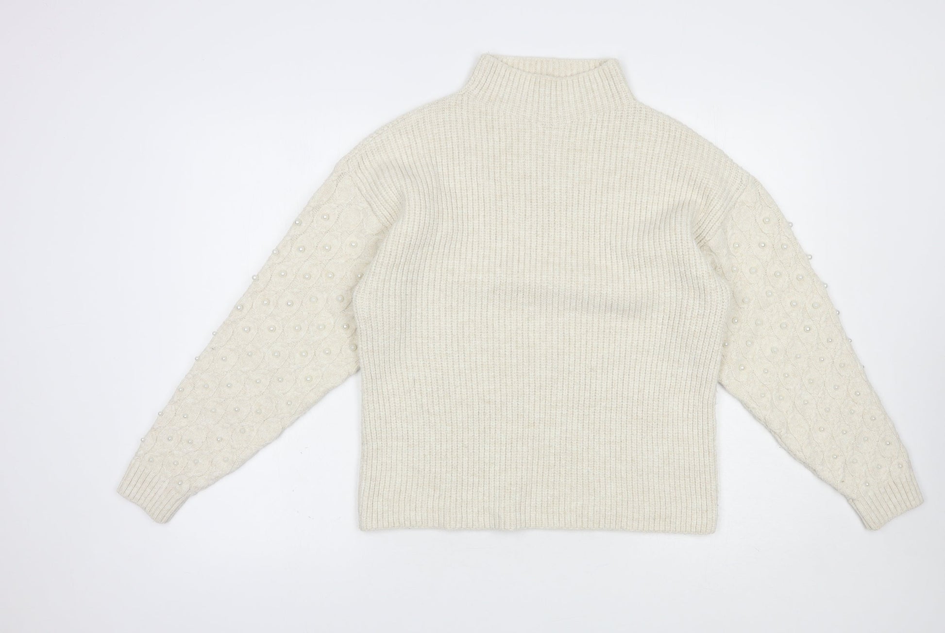 George Womens Beige Mock Neck Acrylic Pullover Jumper Size S