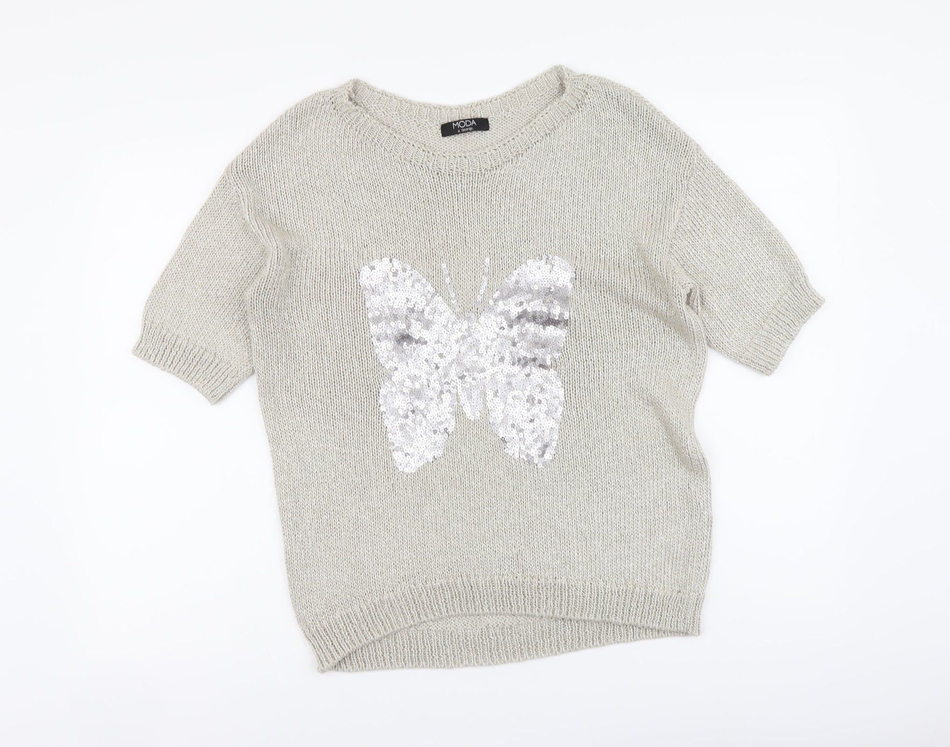 George Womens Beige Round Neck Acrylic Pullover Jumper Size 12 - Butterfly print