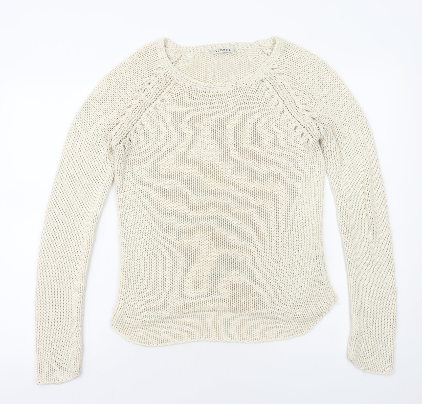 George Womens Beige Round Neck Acrylic Pullover Jumper Size 12