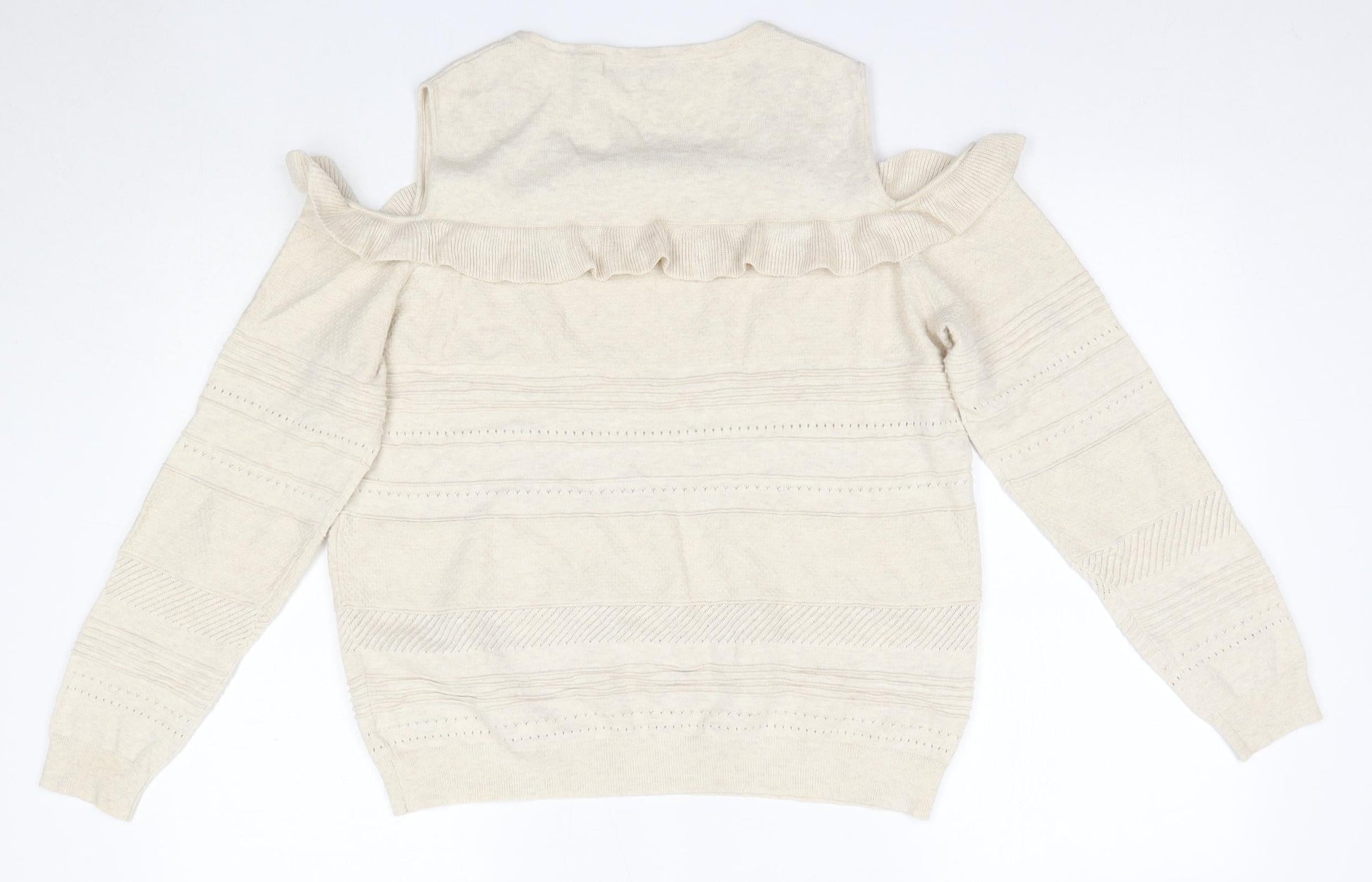 George Womens Beige Round Neck Cotton Pullover Jumper Size 12