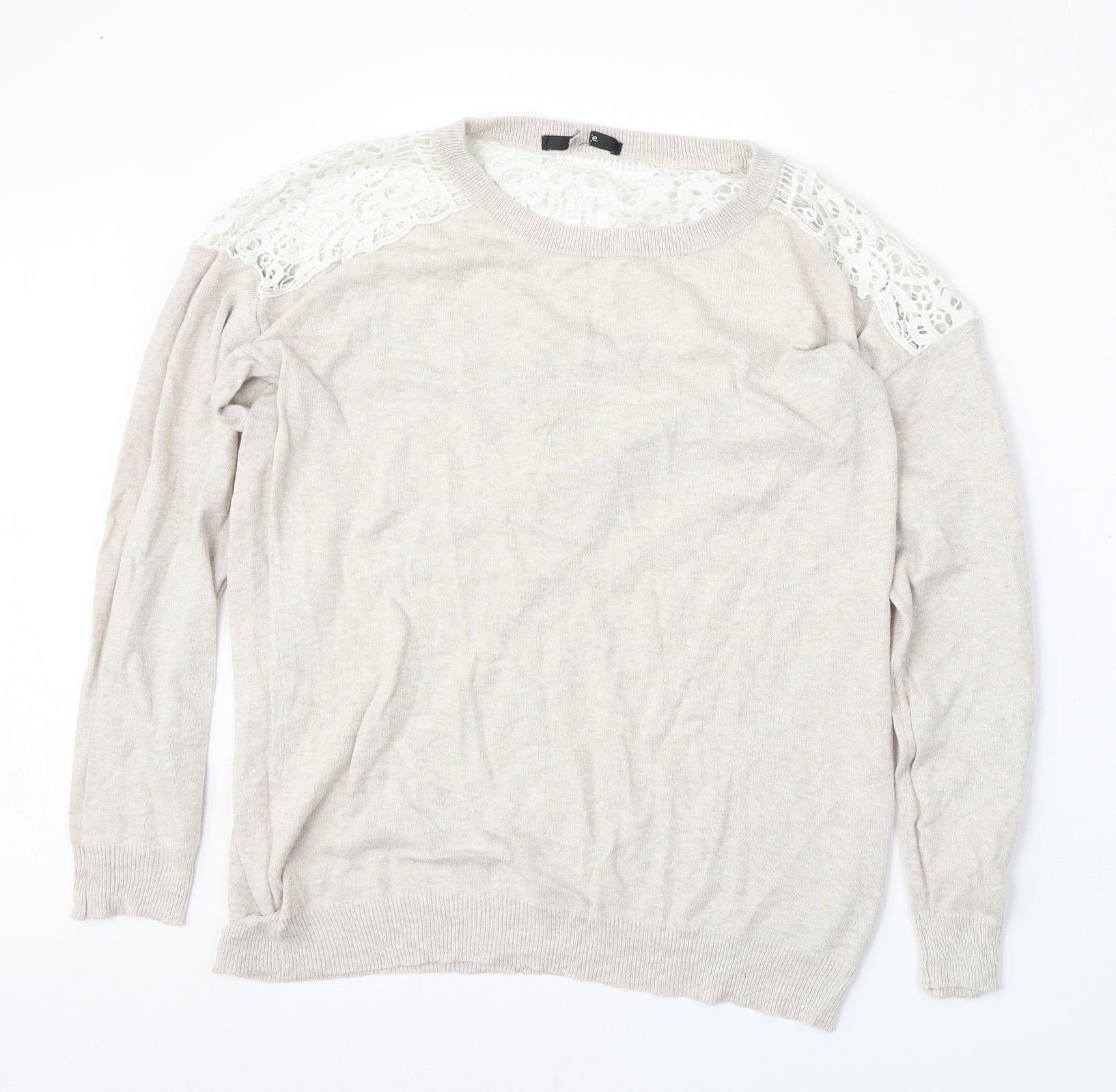 George Womens Beige Round Neck Floral Polyester Pullover Jumper Size L