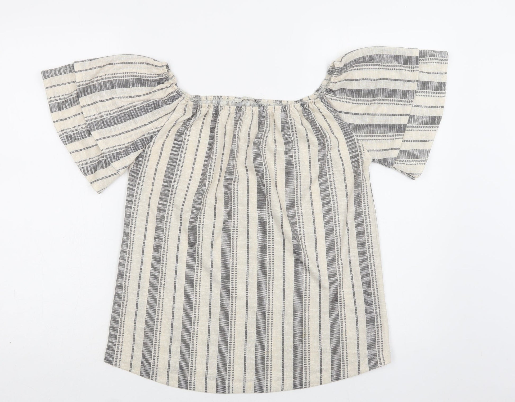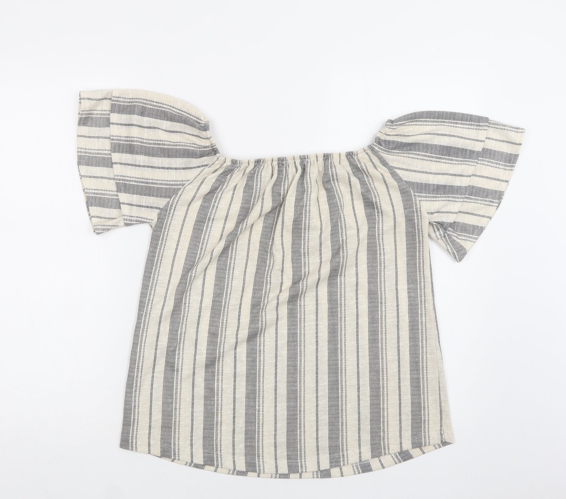 George Womens Beige Striped Polyester Basic Blouse Size 12 Off the Shoulder