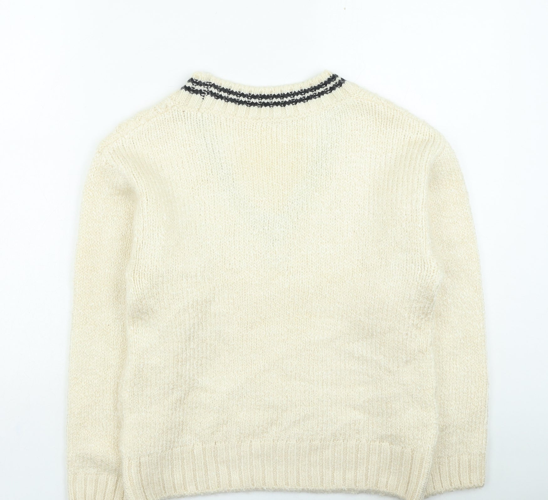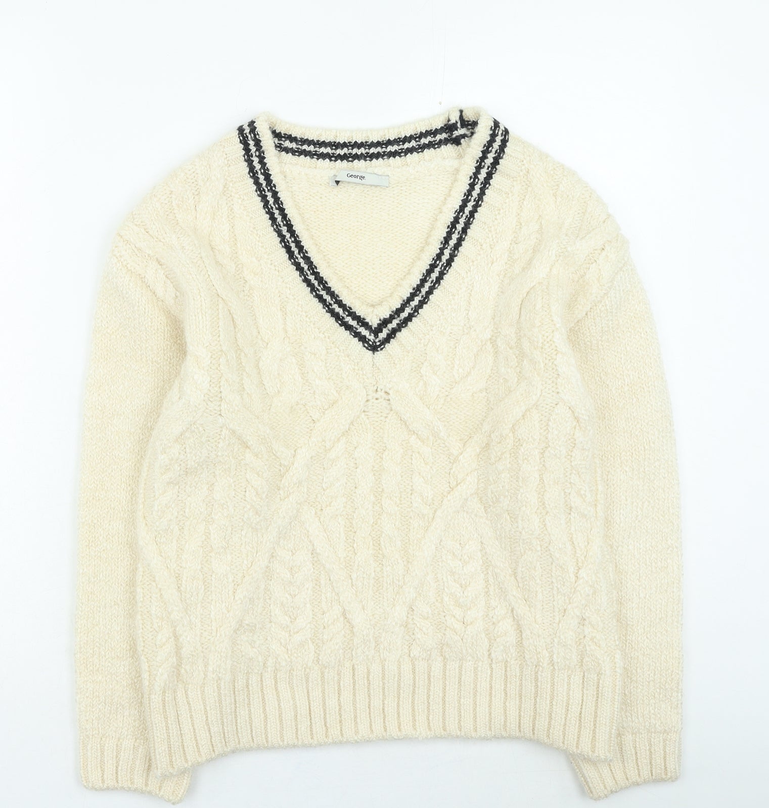 George Womens Beige V-Neck Acrylic Pullover Jumper Size S