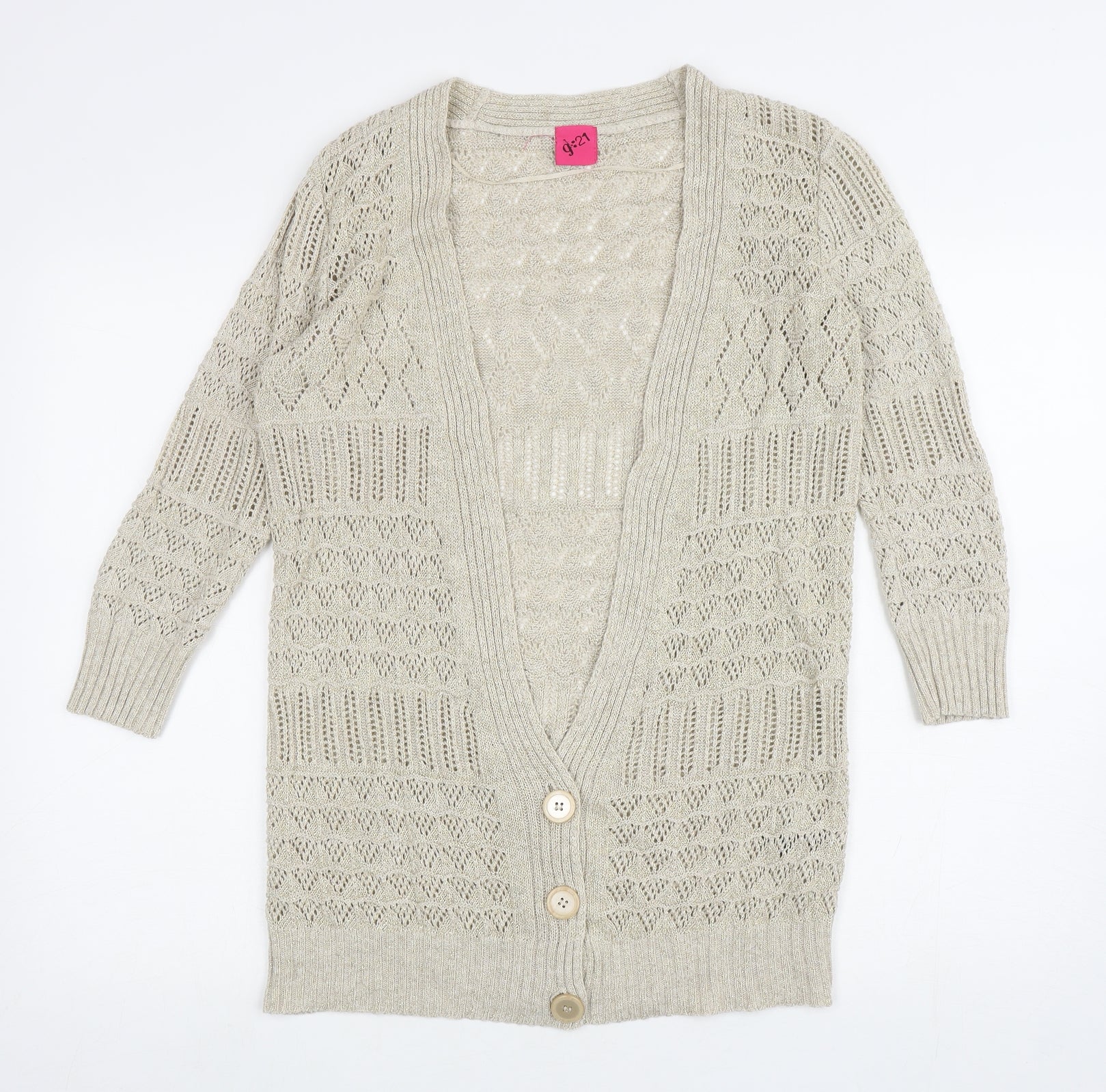 George Womens Beige V-Neck Cotton Cardigan Jumper Size 10