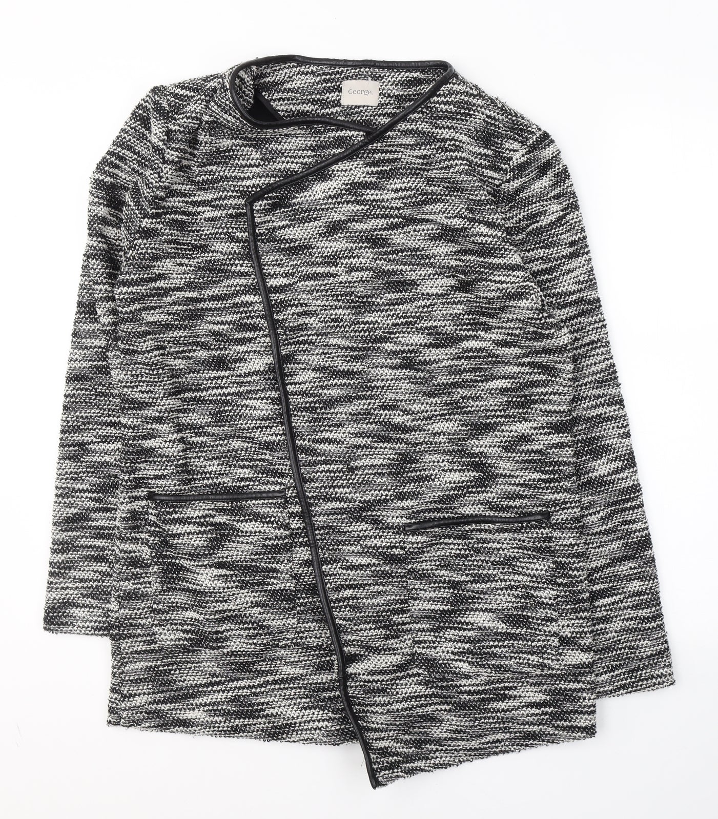 George Womens Beige V-Neck Herringbone Polyester Cardigan Jumper Size 12