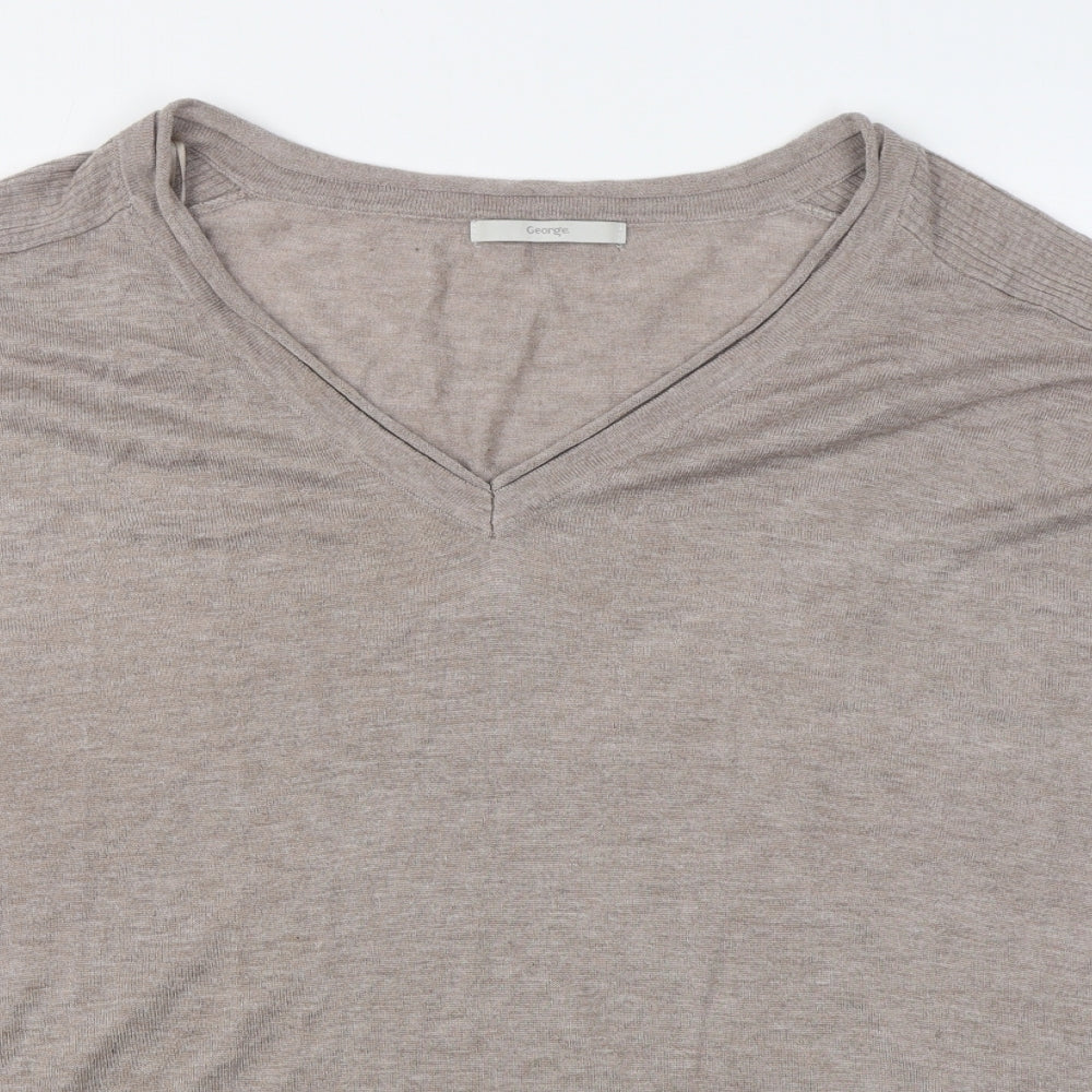 George Womens Beige V-Neck Viscose Pullover Jumper Size 20