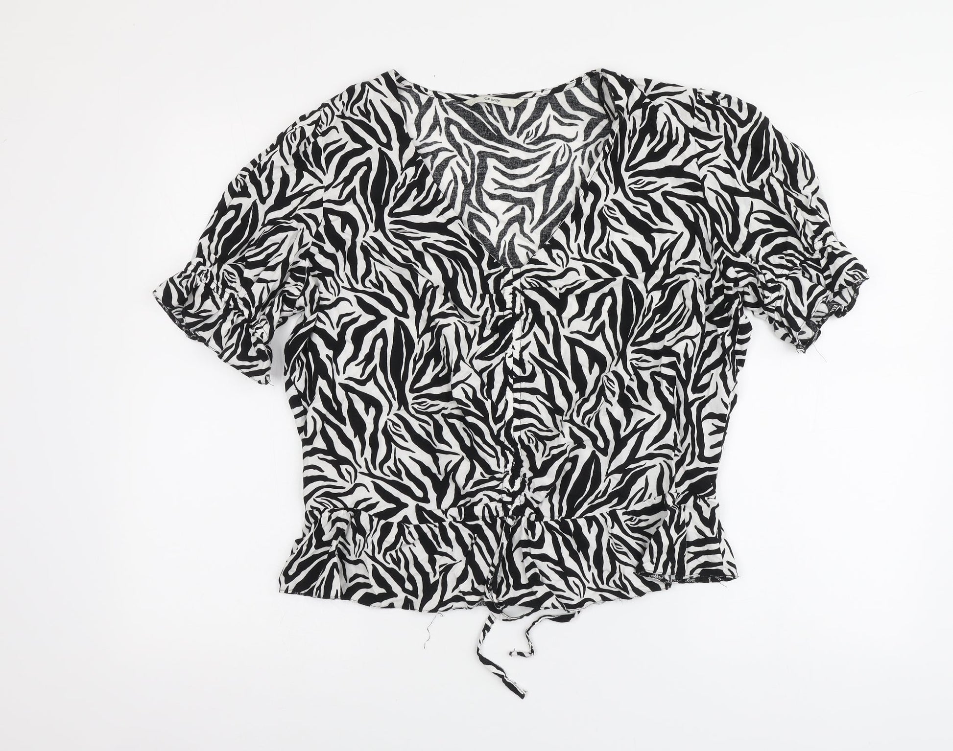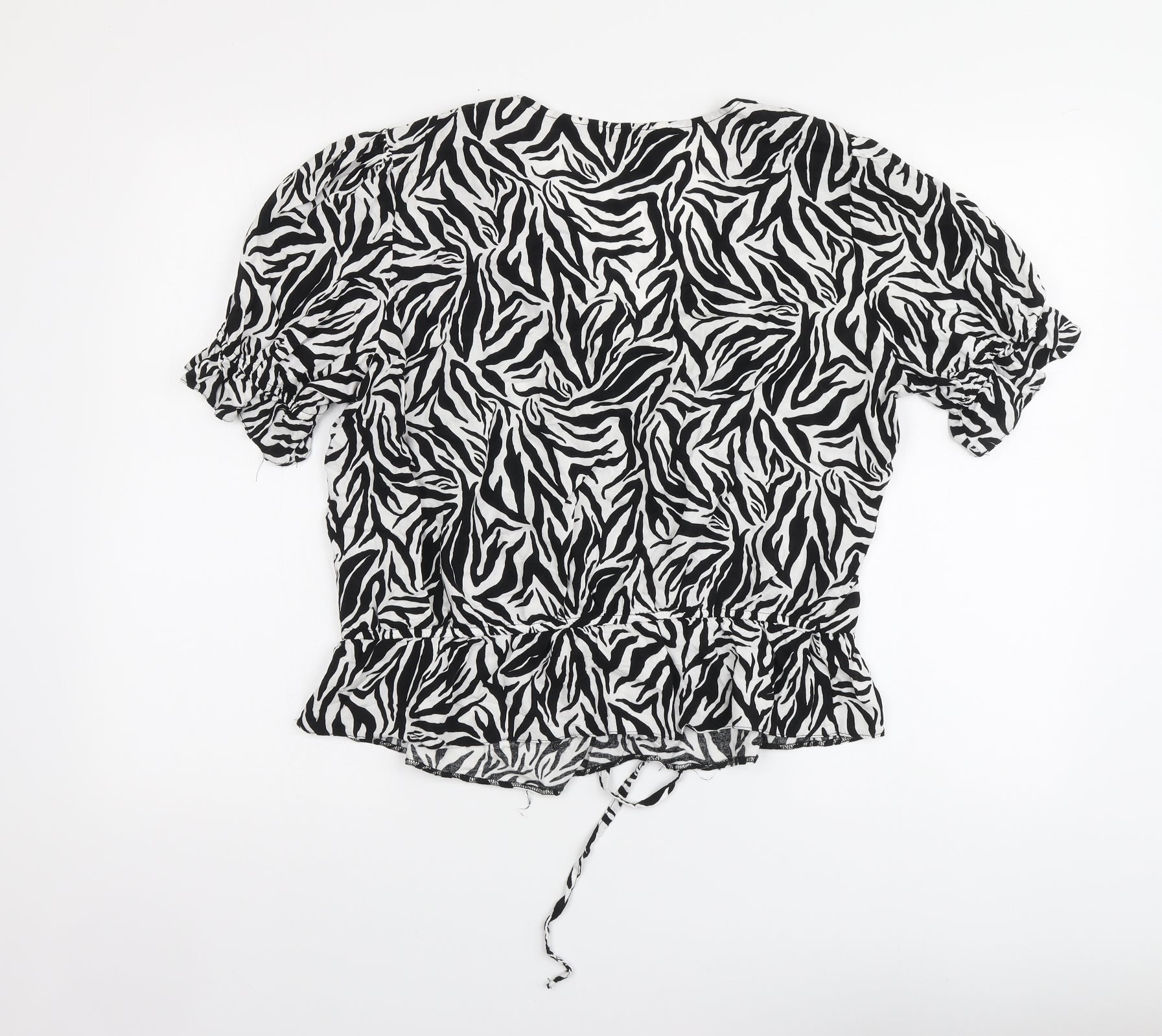 George Womens Black Animal Print Viscose Basic Blouse Size 16 V-Neck - Zebra Print