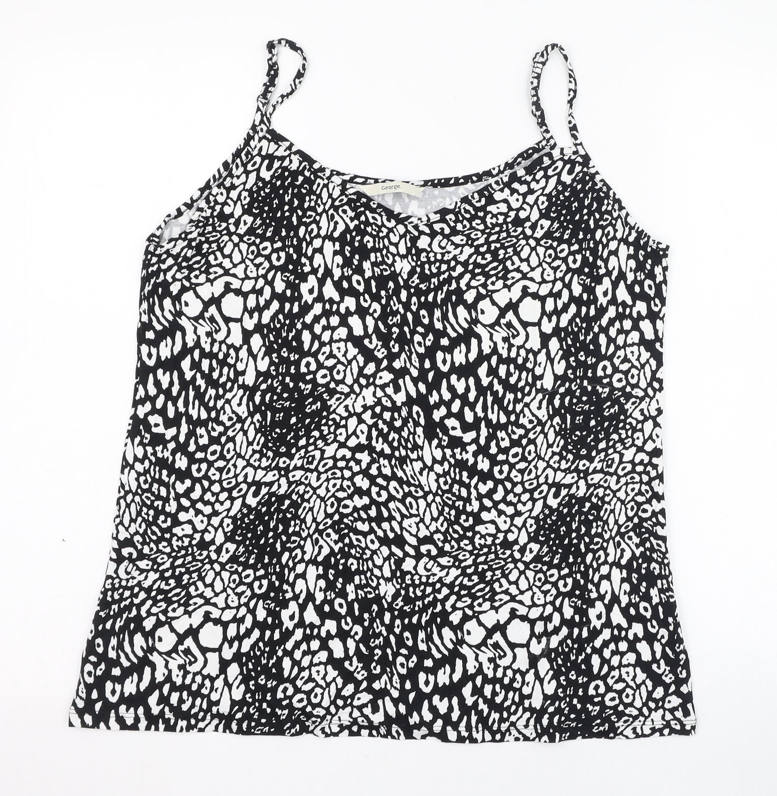 George Womens Black Animal Print Viscose Basic Tank Size 14 V-Neck