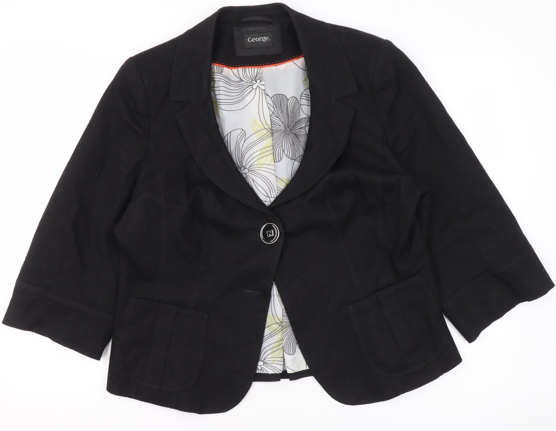 George Women's Black Blazer UK 18 Regular Fit One Button Lined Jacket