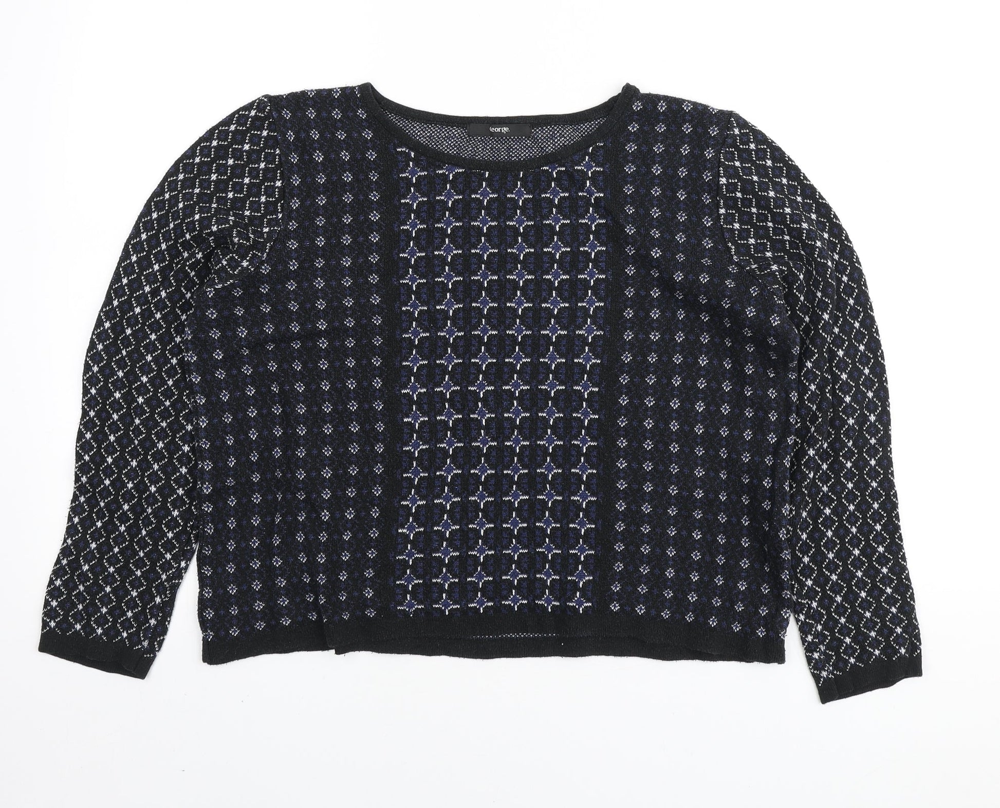 George Womens Black Boat Neck Geometric Cotton Pullover Jumper Size 10