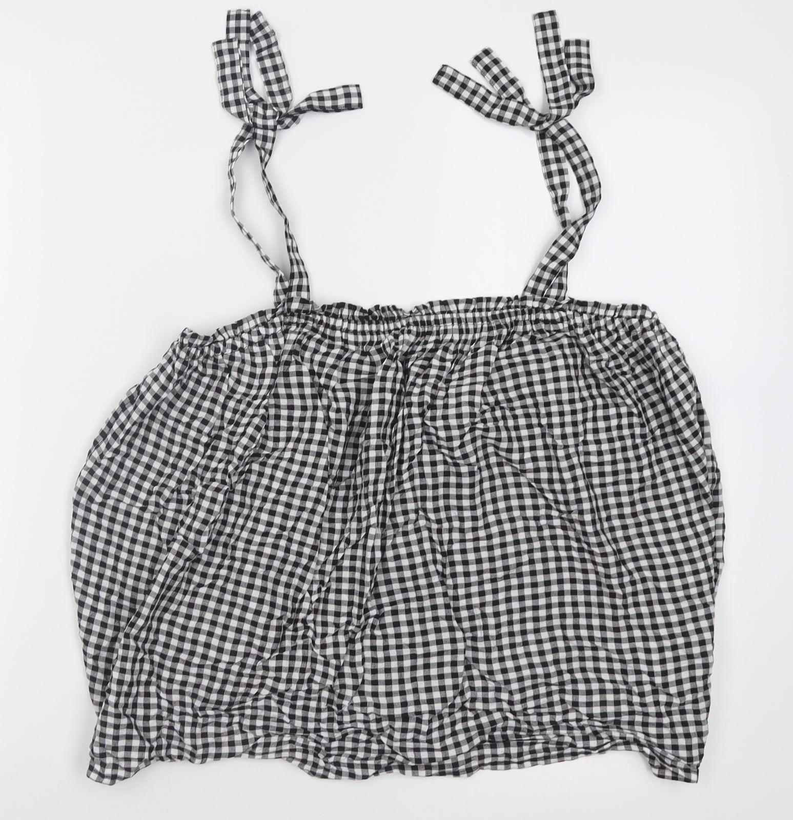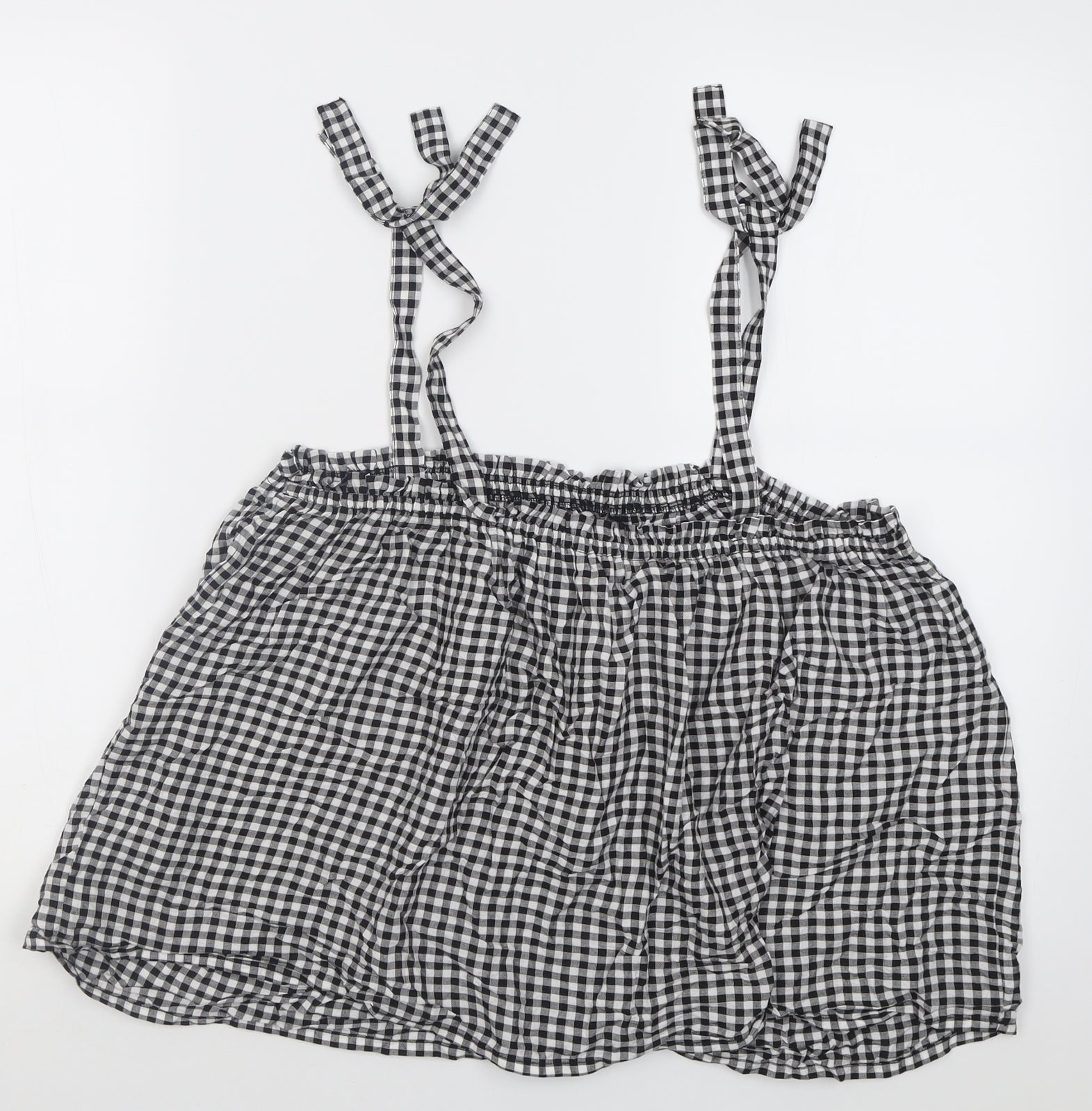 George Womens Black Check Viscose Basic Tank Size 10 Square Neck