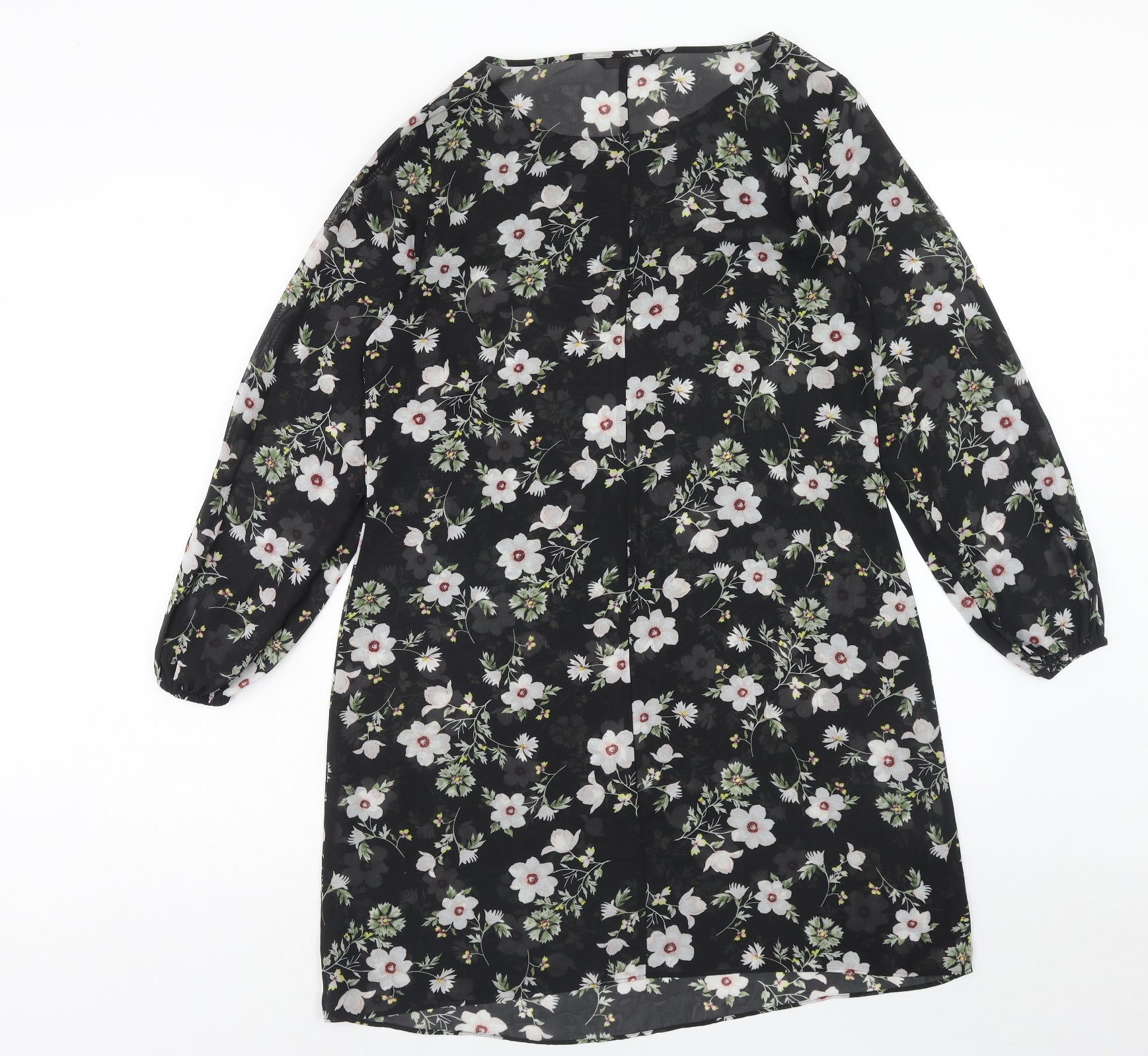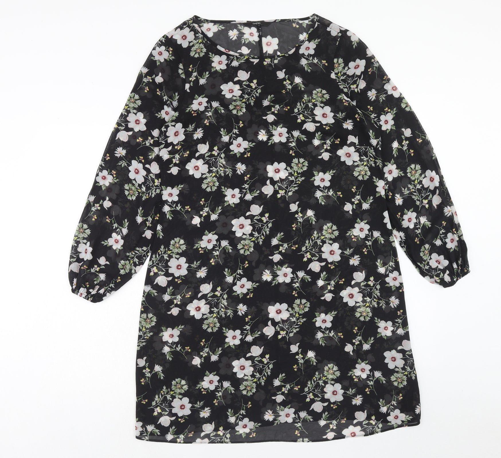 George Womens Black Floral Polyester A-Line Size 10 Round Neck Pullover