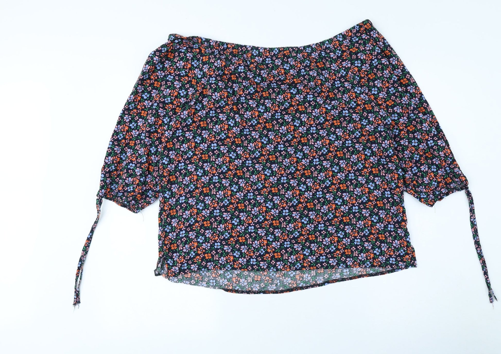 George Womens Black Floral Viscose Basic Button-Up Size 14 Off the Shoulder - Elasticated Collar