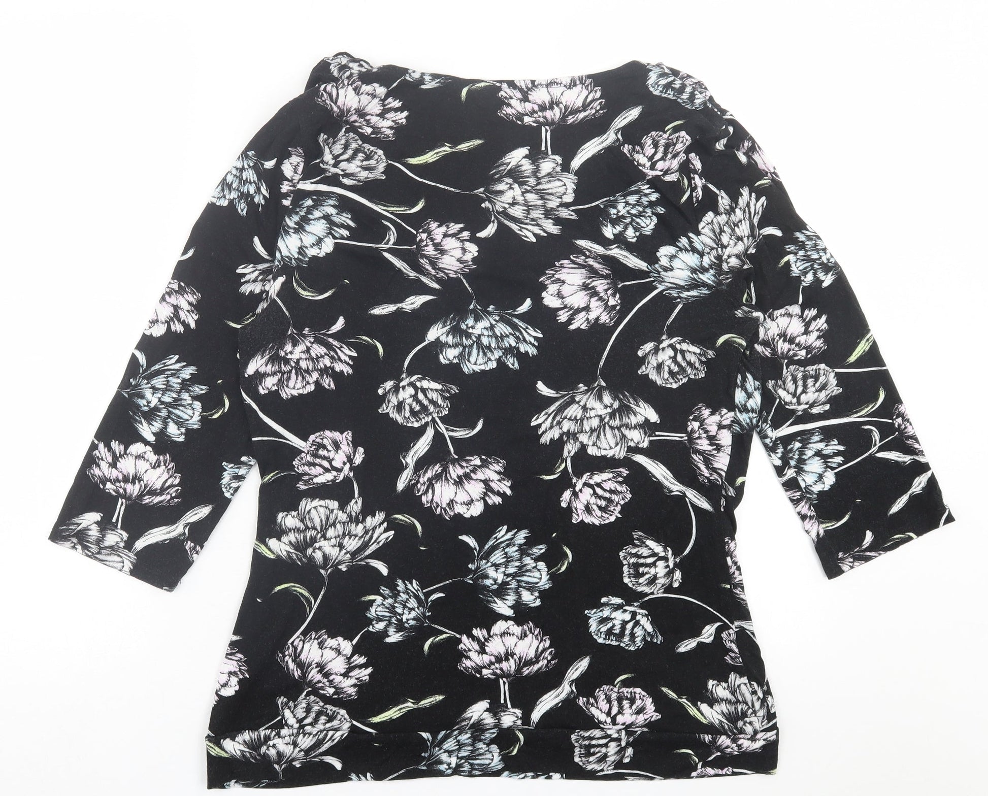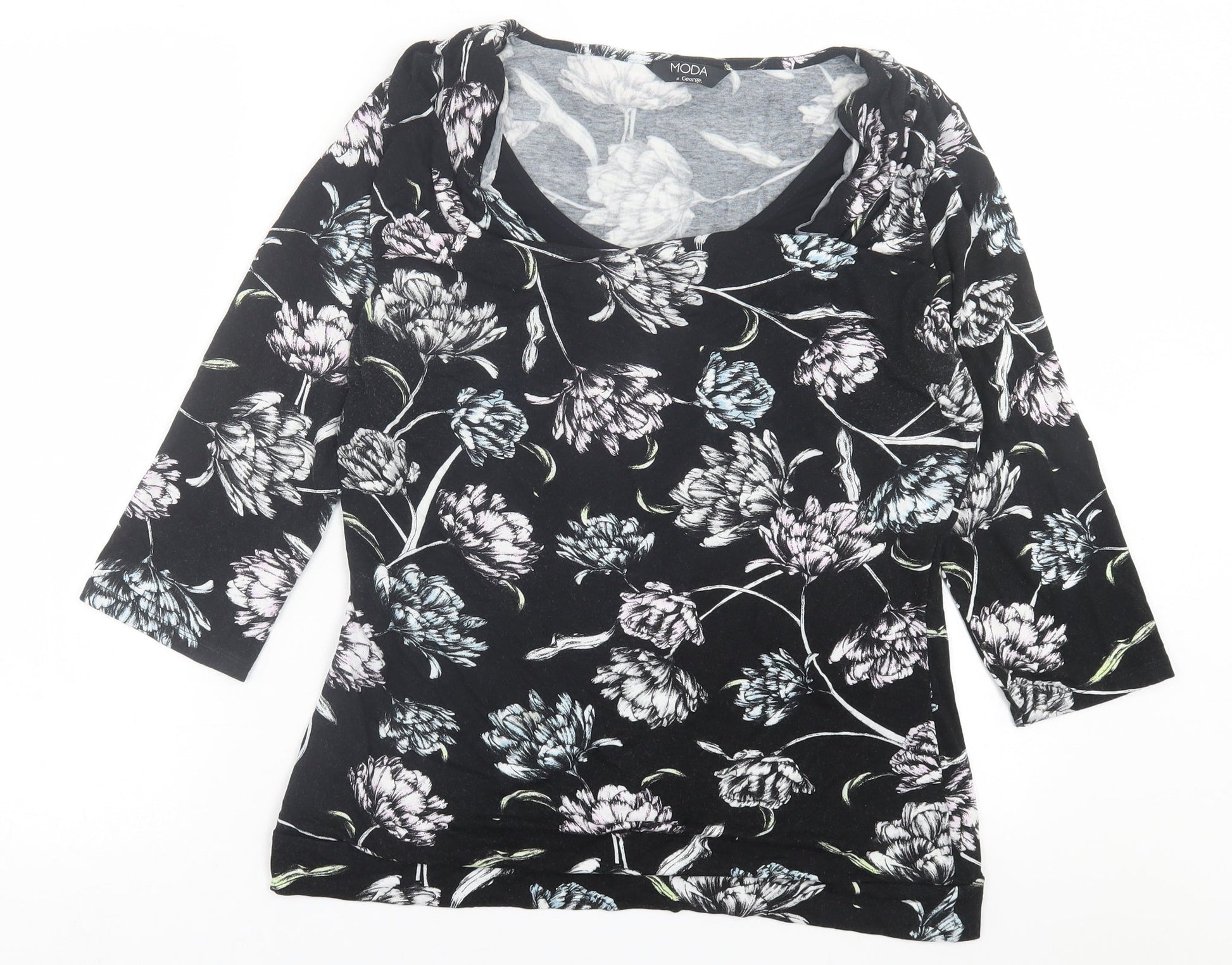 George Womens Black Floral Viscose Basic T-Shirt Size 16 Scoop Neck