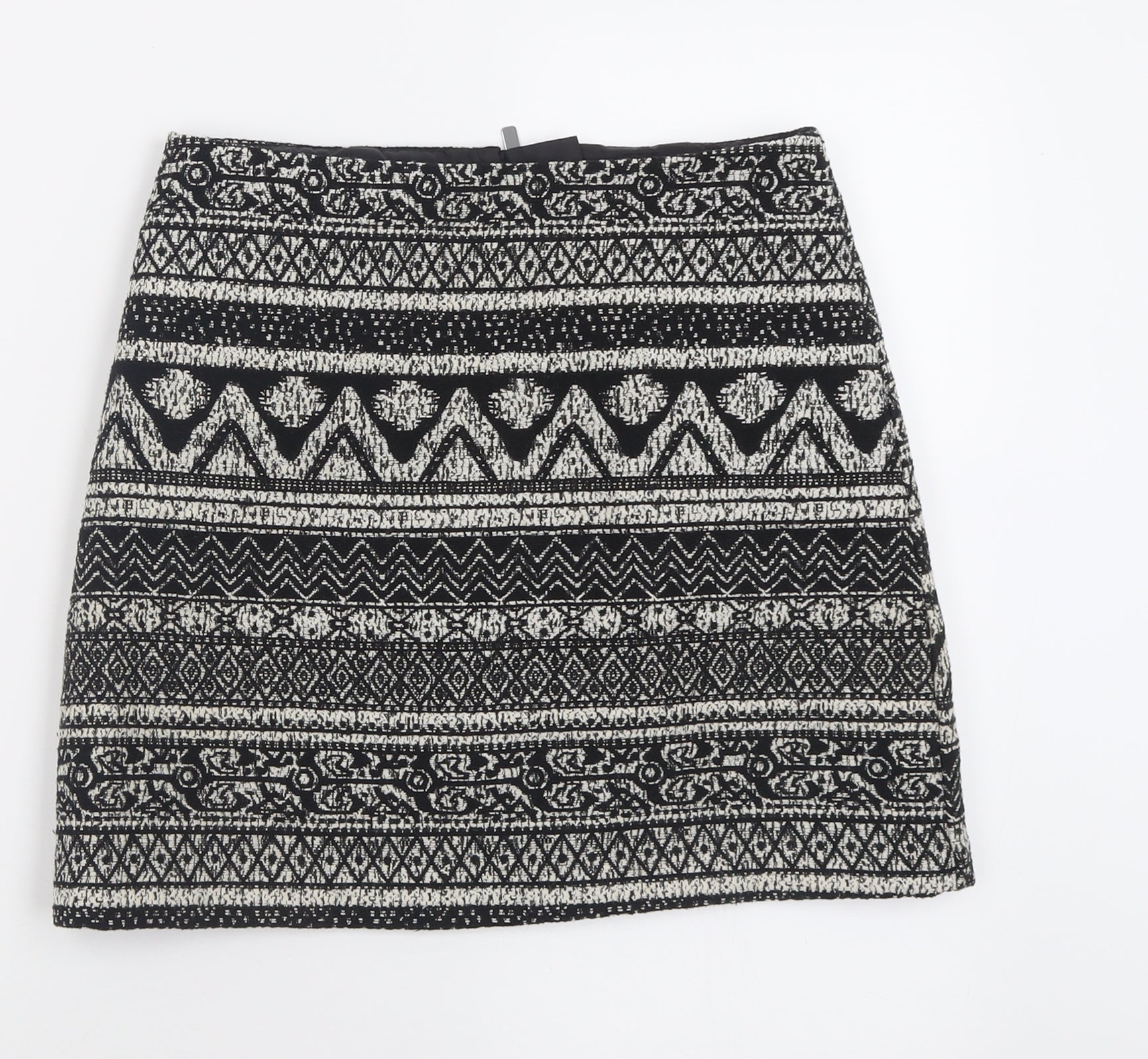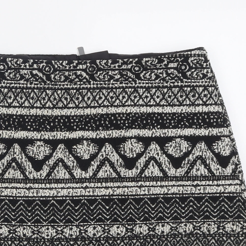 George Womens Black Geometric Polyacrylate Fibre A-Line Skirt Size 8 Zip