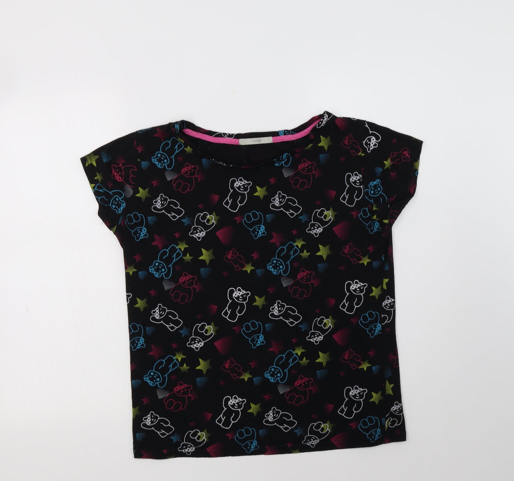 George Womens Black Geometric Polyester Basic Polo Size 12 Crew Neck - Teddy Bear Print