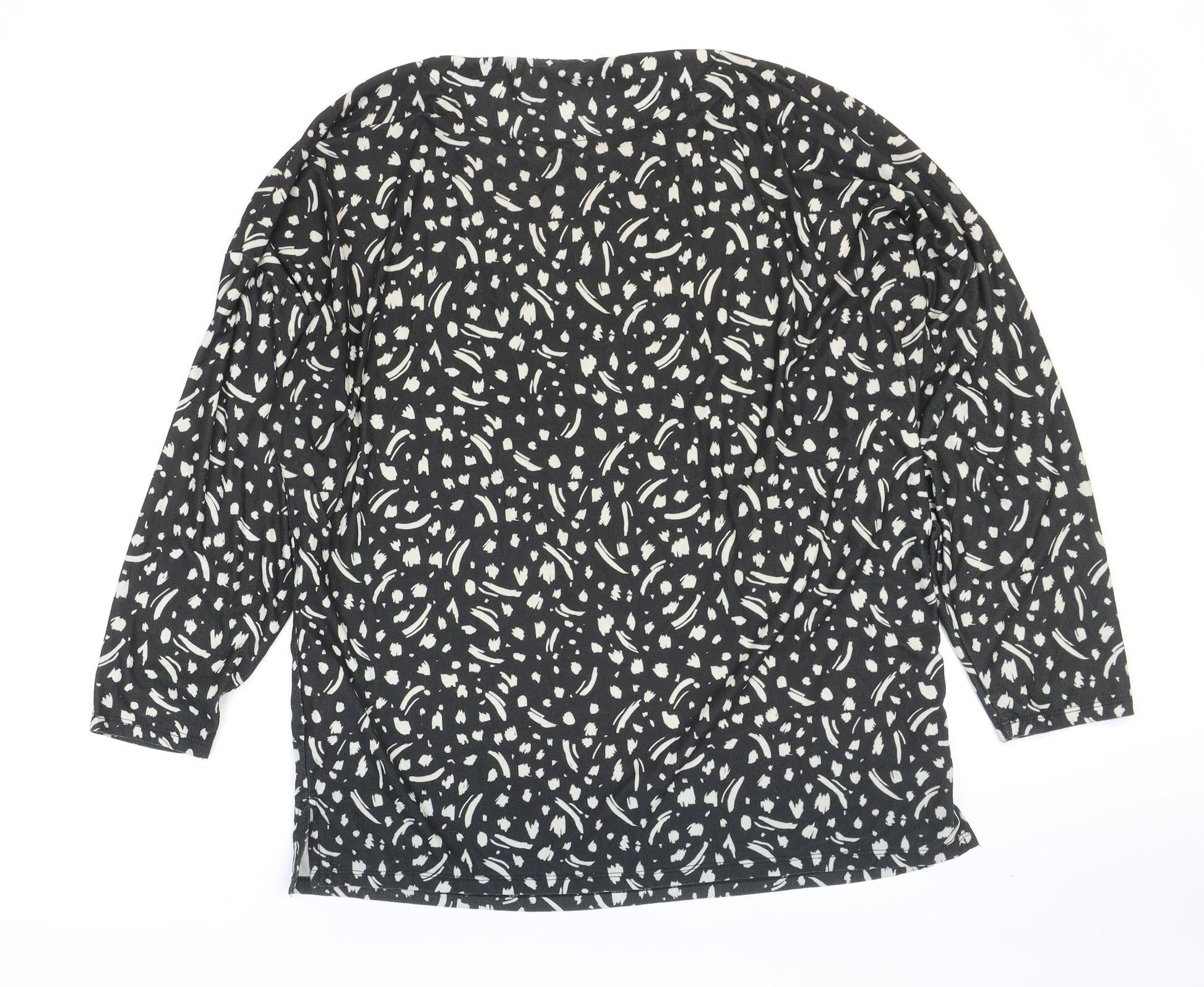 George Womens Black Geometric Polyester Basic T-Shirt Size M Round Neck