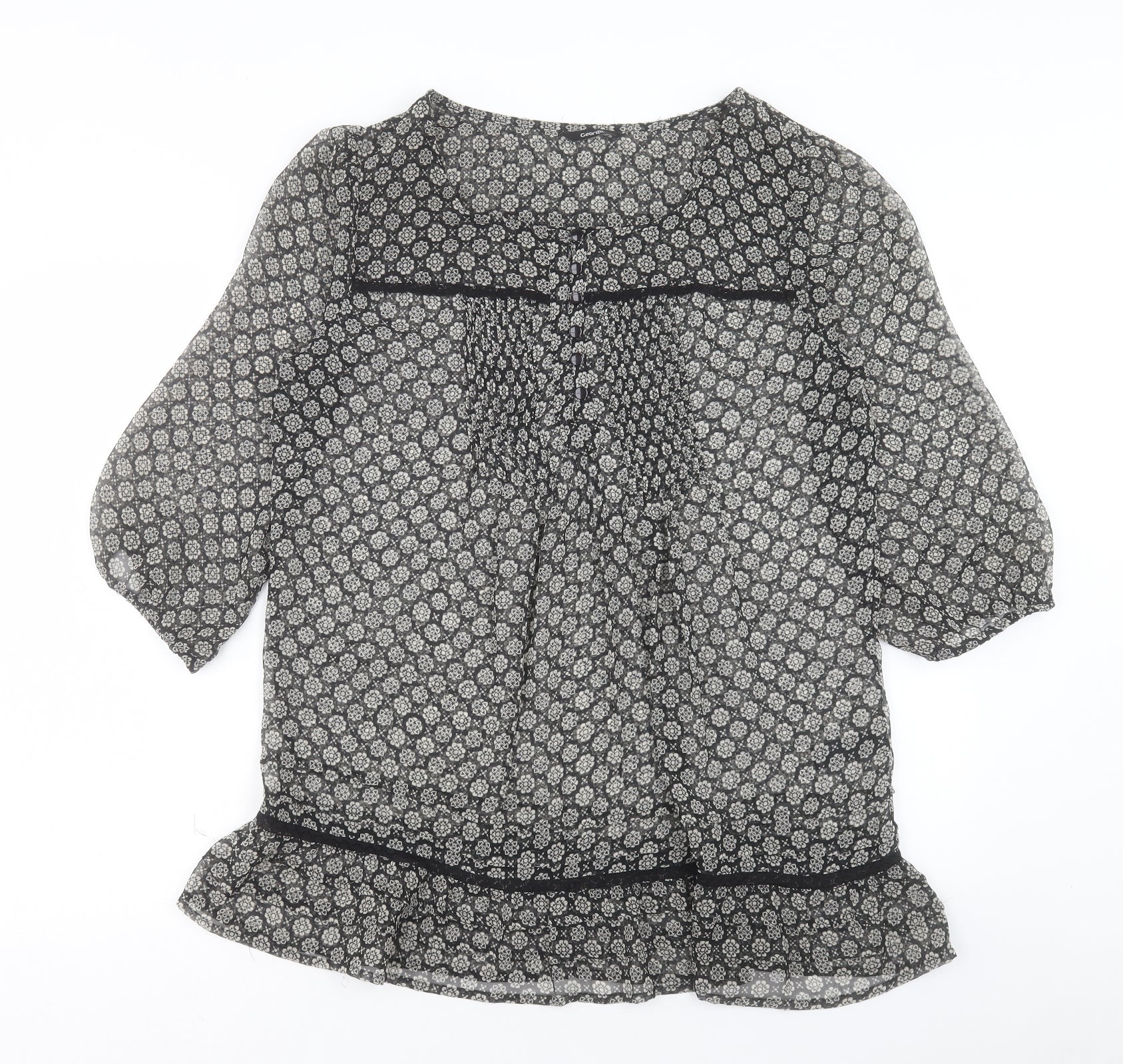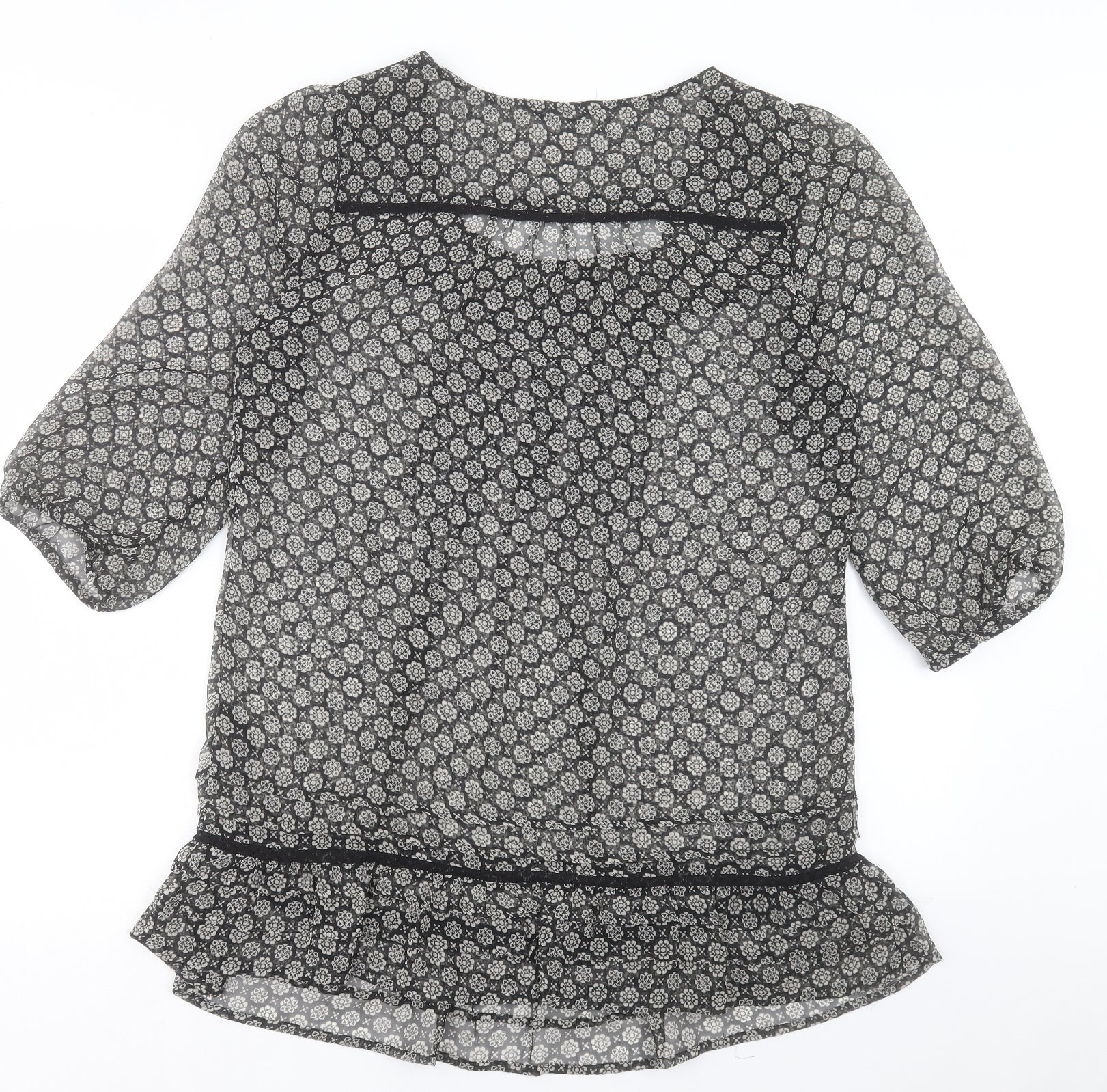 George Womens Black Geometric Polyester Shift Size 12 Round Neck Button
