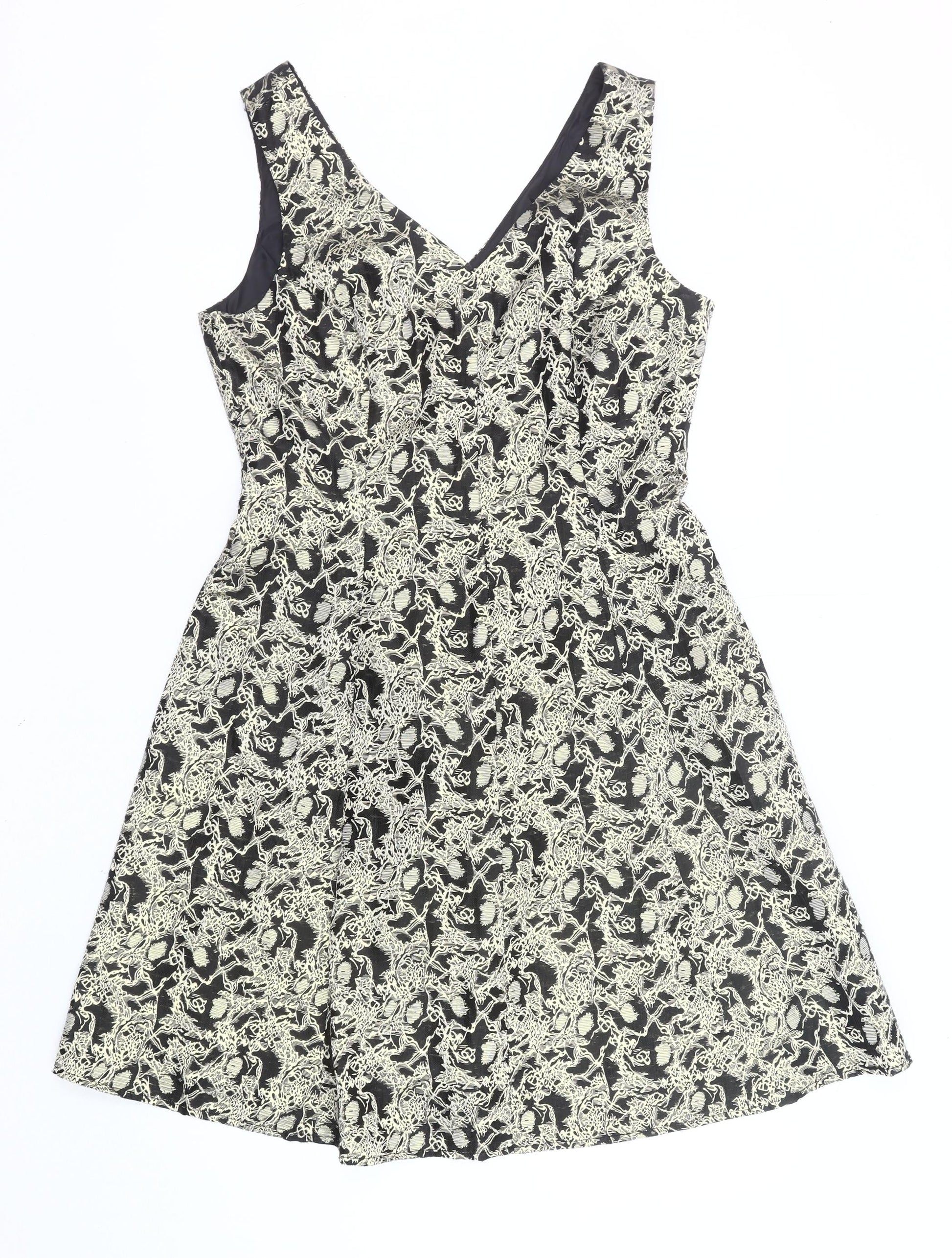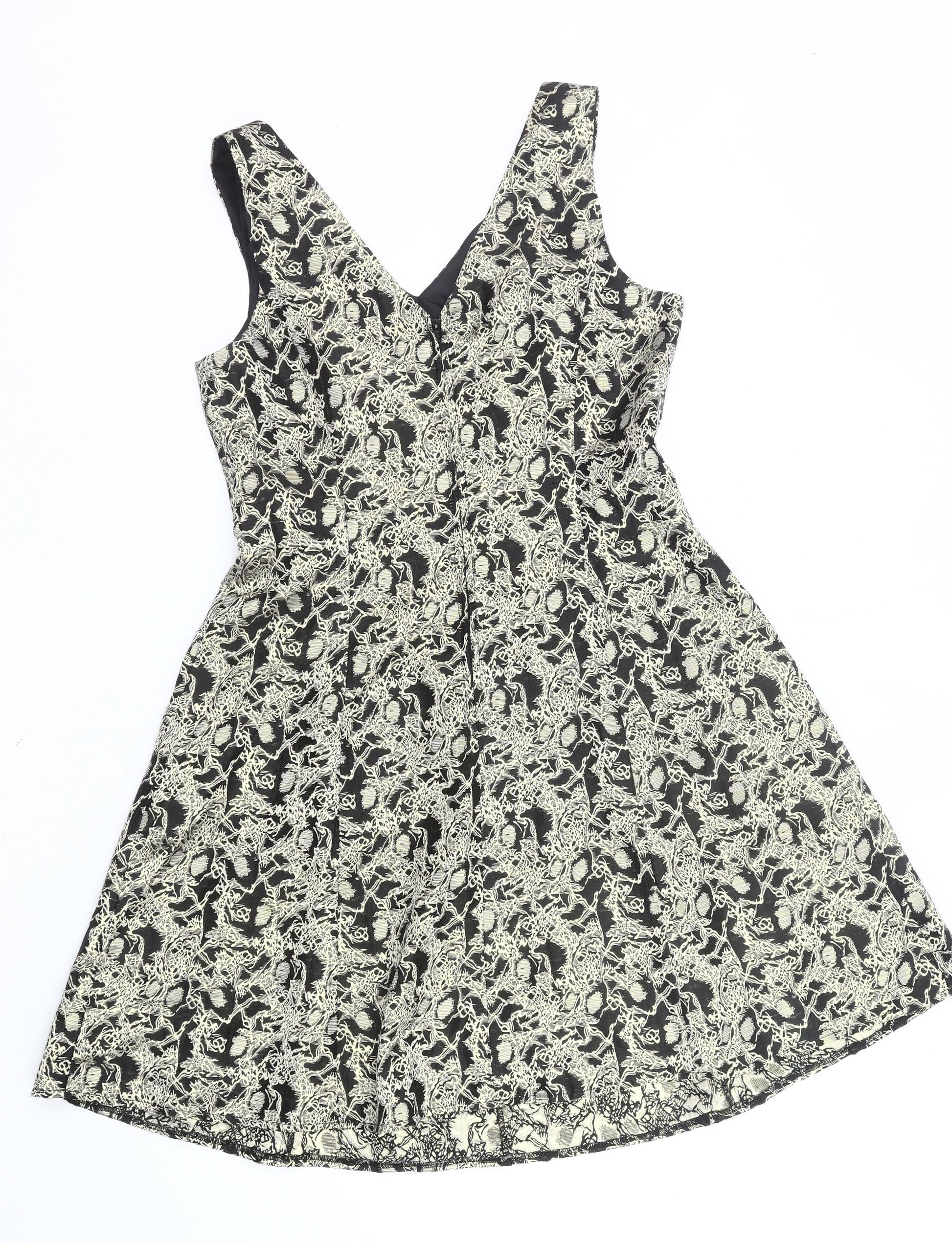 George Womens Black Gold Jacquard A-Line Dress Size 12