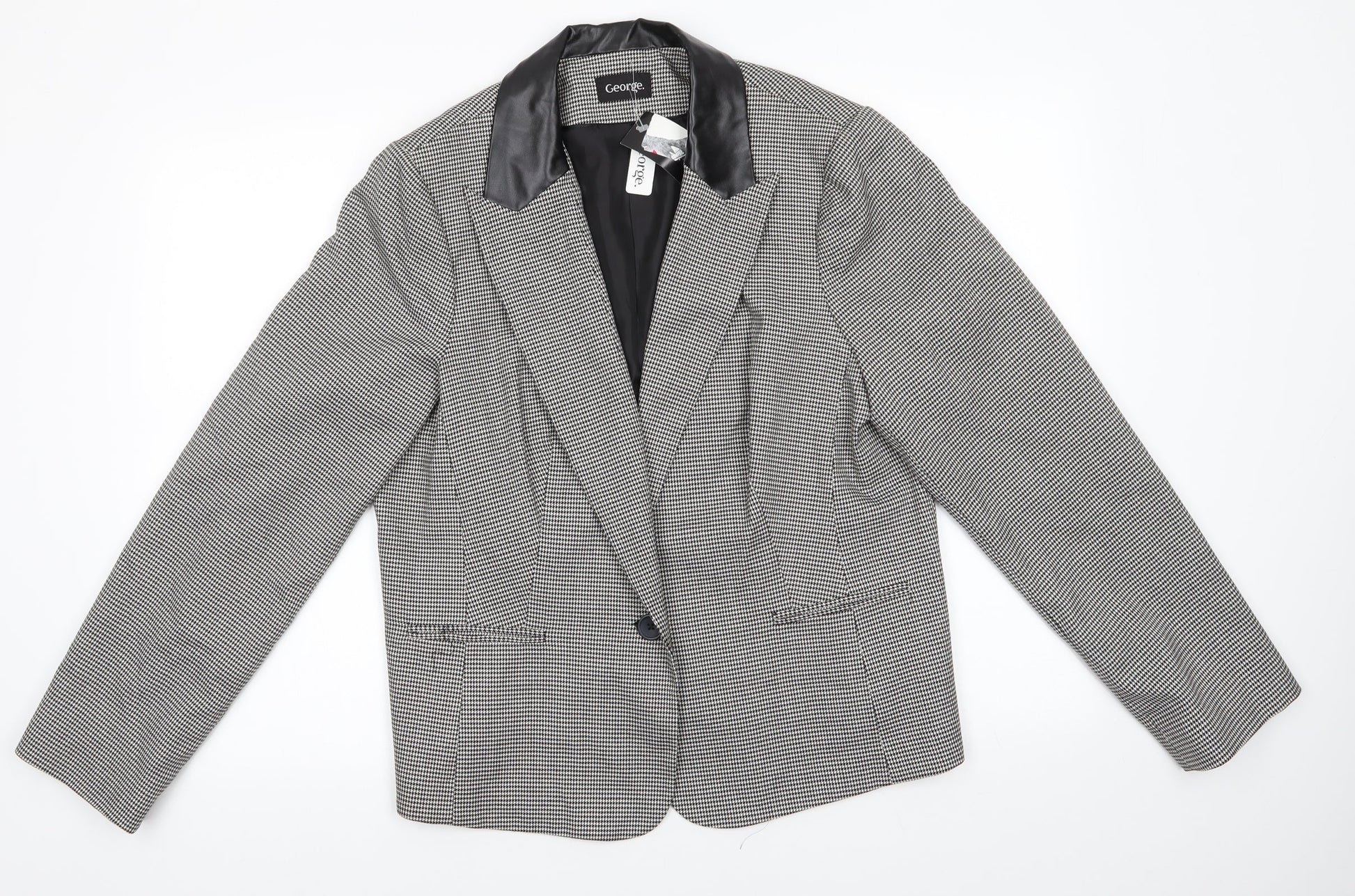 George Womens Black Houndstooth Polyester Jacket Suit Jacket Size 18 - Faux Leather Collar