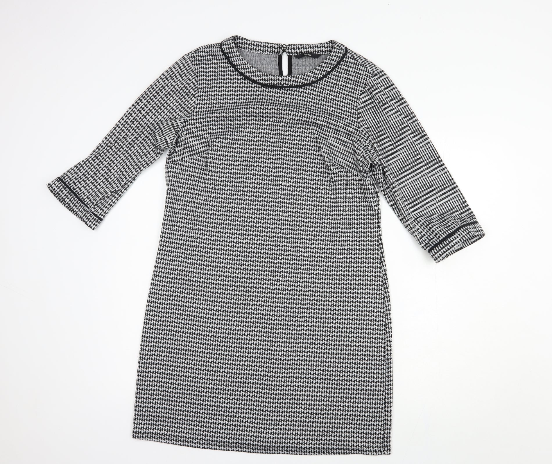 George Womens Black Houndstooth Polyester Shift Size 12 Boat Neck Button