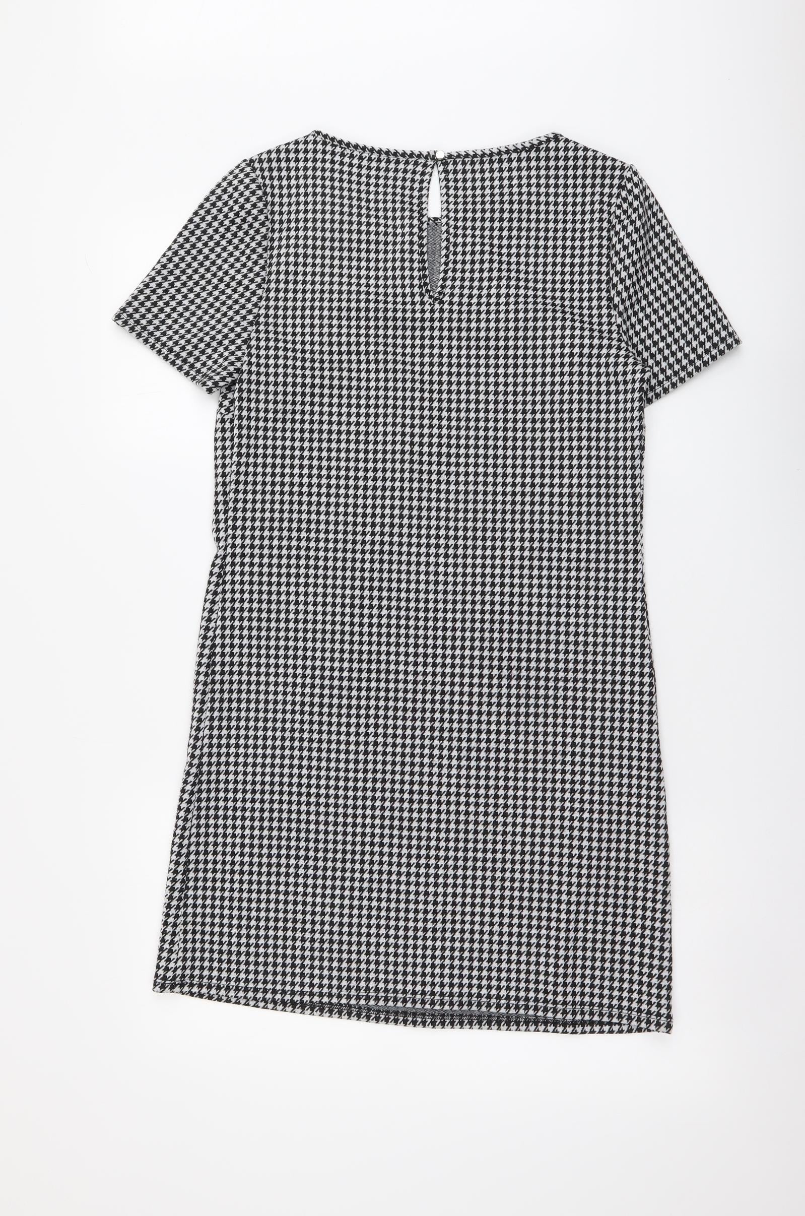 George Womens Black Houndstooth Polyester Shift Size 8 Round Neck Pullover