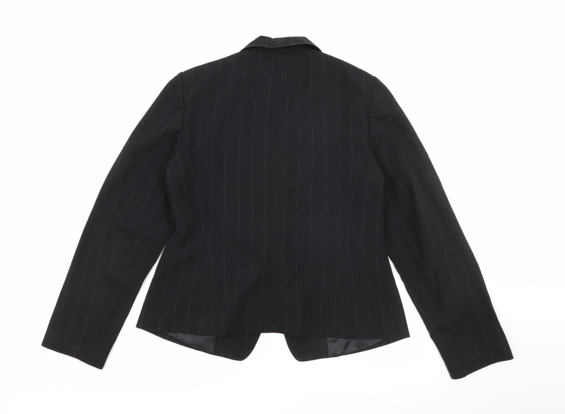 George Womens Black Pinstripe Polyester Jacket Blazer Size 14