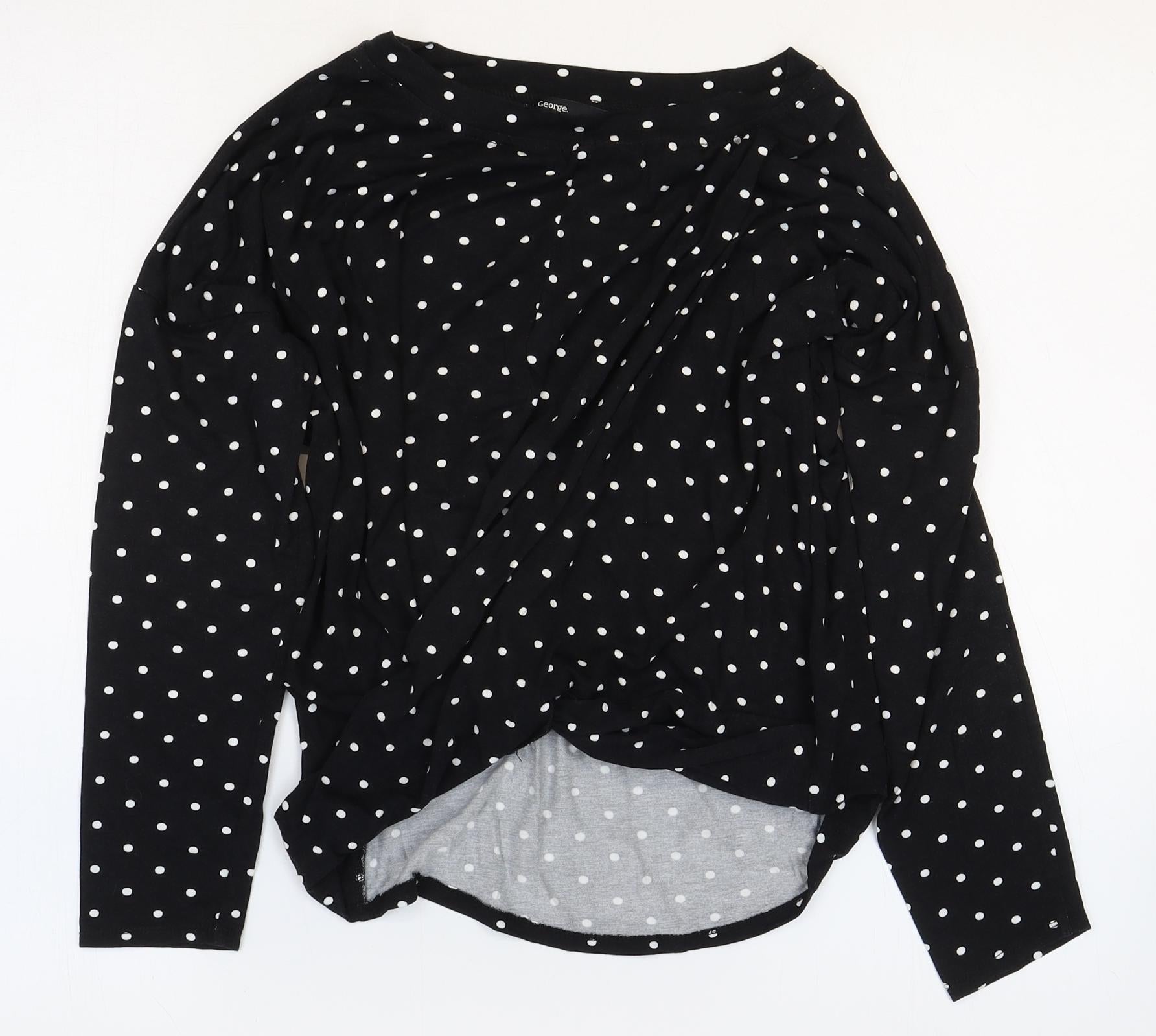George Womens Black Polka Dot Viscose Basic Blouse Size 10 Boat Neck