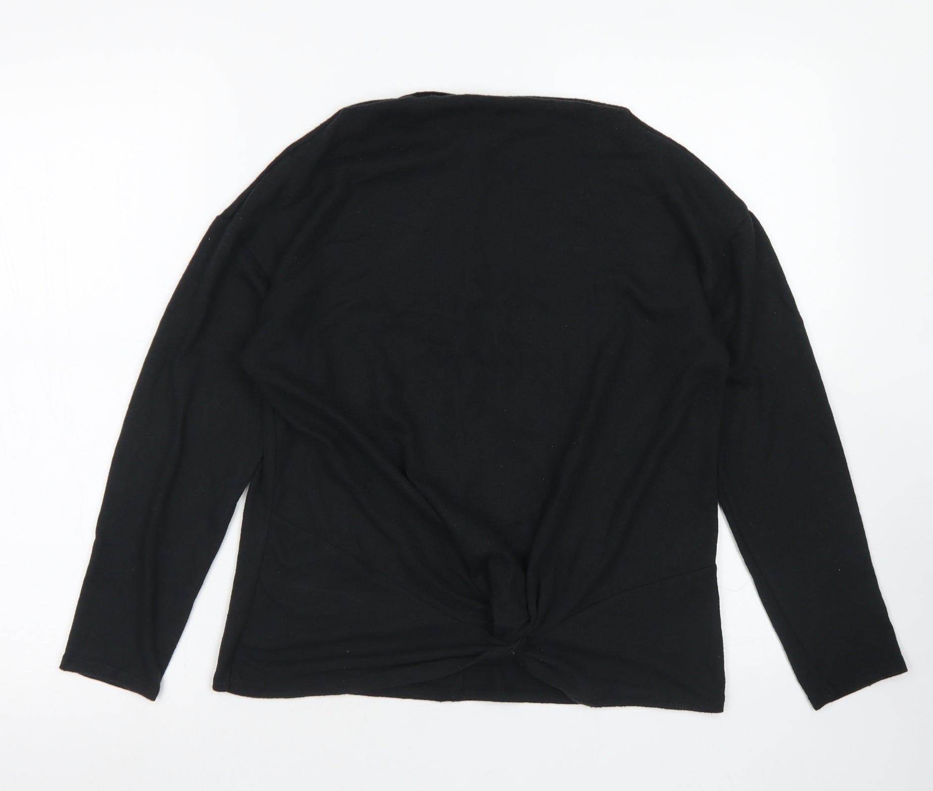 George Womens Black Polyester Basic T-Shirt Size 10 Boat Neck - knot front