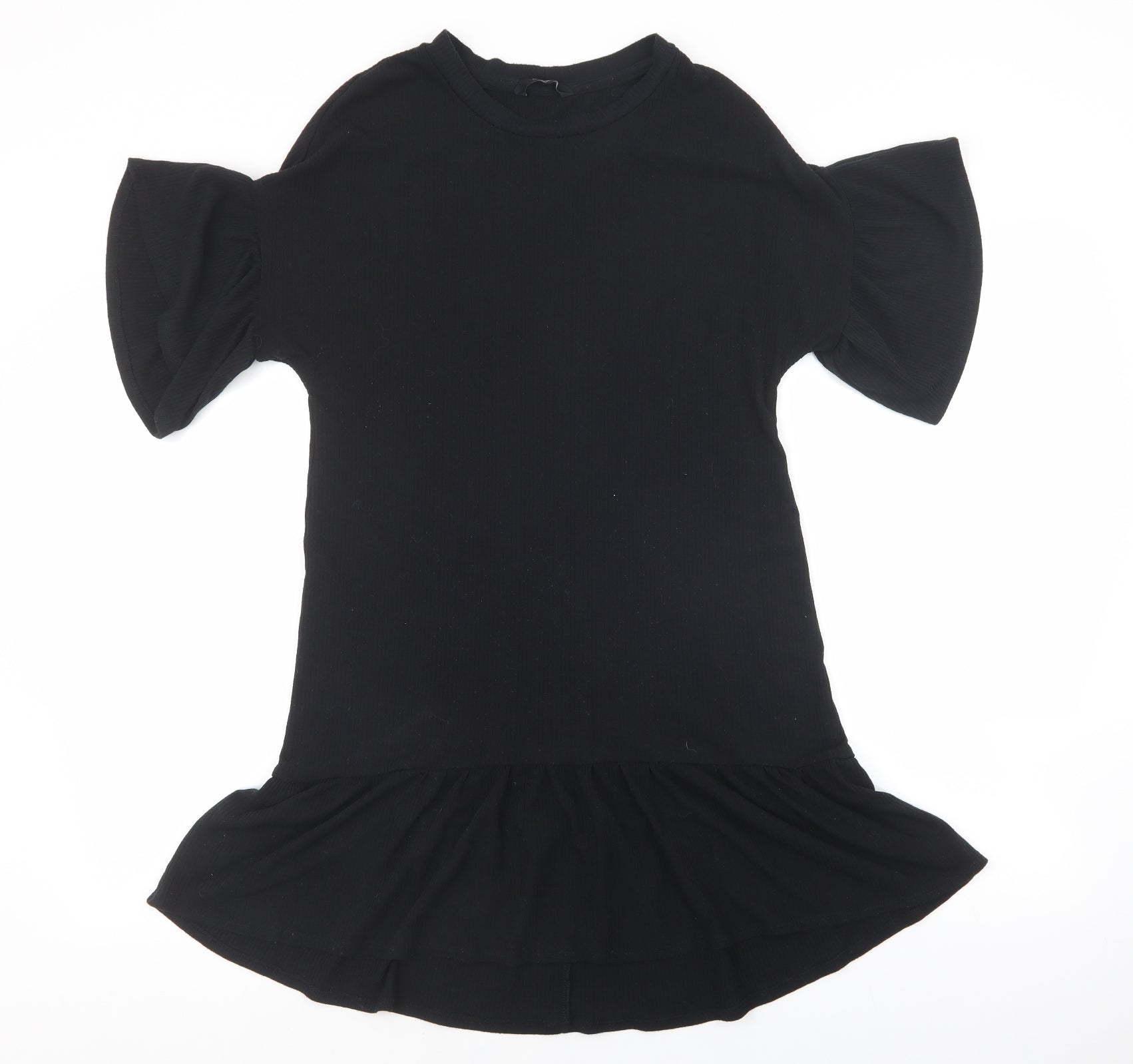 George Womens Black Polyester T-Shirt Dress Size 10 Round Neck Pullover - Ribbed, Frill sleeves