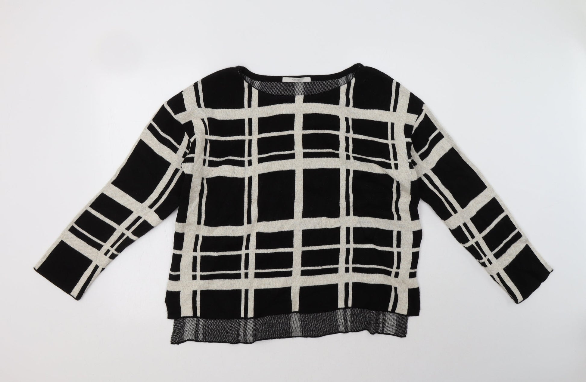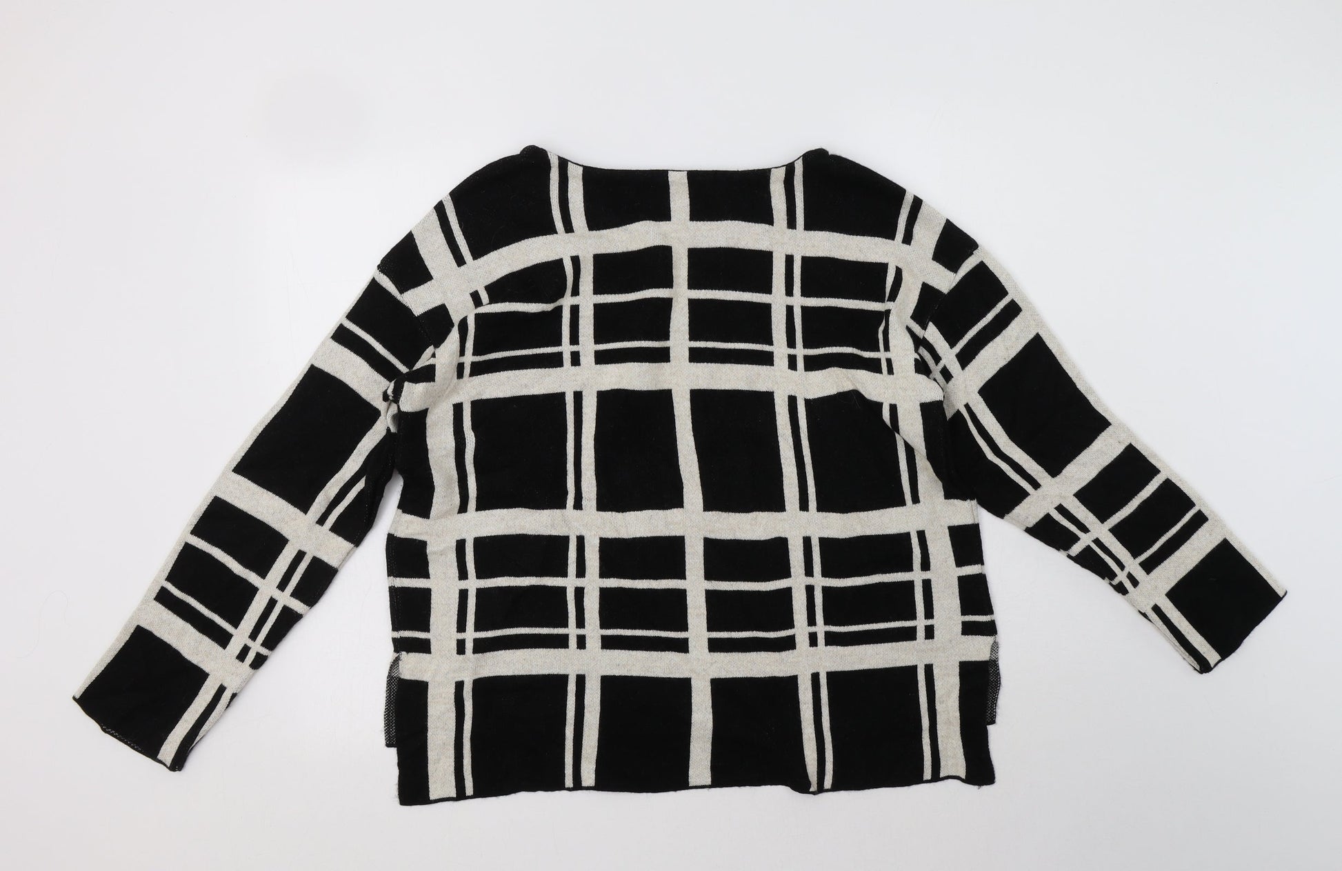 George Womens Black Roll Neck Check Acrylic Pullover Jumper Size 14