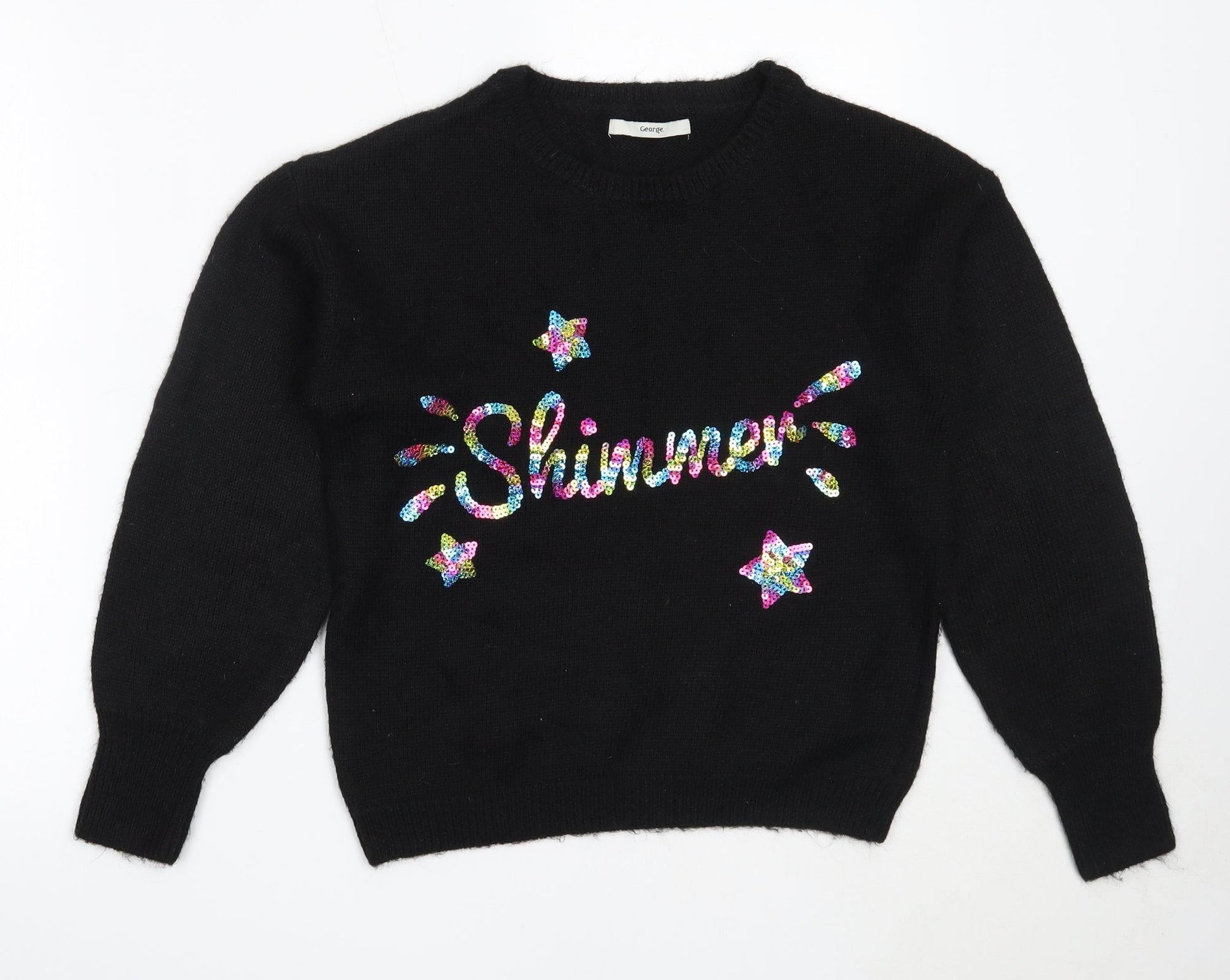 George Womens Black Round Neck Polyester Pullover Jumper Size S